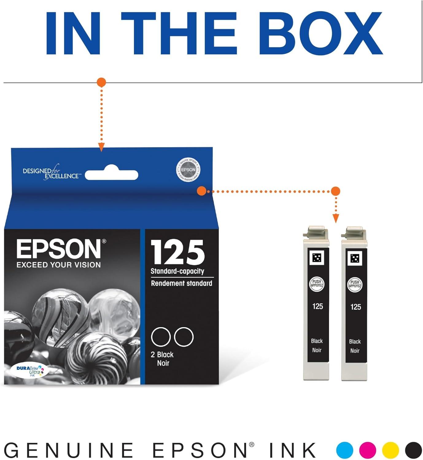 EPSON 125 DURABrite Ultra Ink Standard Capacity Black Dual Cartridge (T125120-D2) Works with Stylus NX-125, NX-127, NX-130, NX-230, NX-420, NX-530, NX-625, WorkForce WF-320, WF-323, WF-325, WF-520