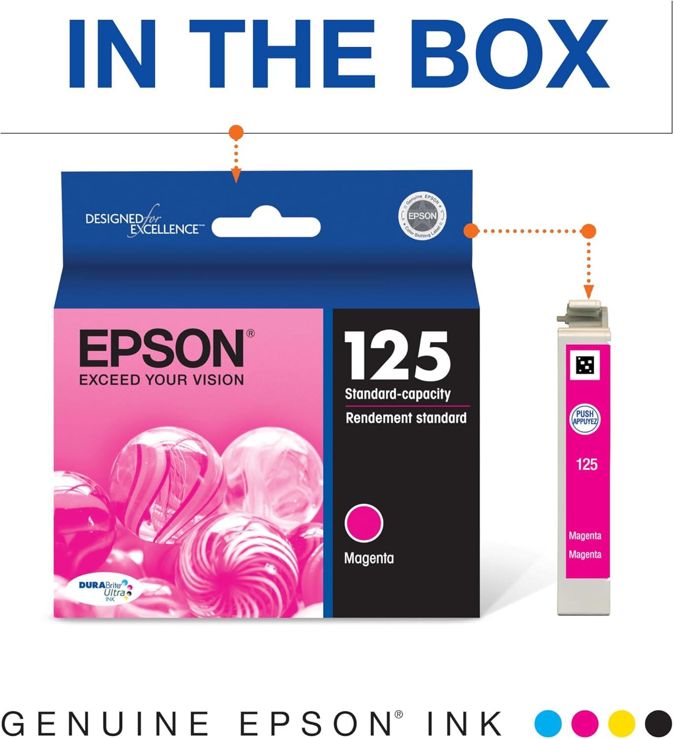 EPSON 125 DURABrite Ultra Ink Standard Capacity Magenta Cartridge (T125320-S) Works with Stylus NX-125, NX-127, NX-130, NX-230, NX-420, NX-530, NX-625, WorkForce WF-320, WF-323, WF-325, WF-520