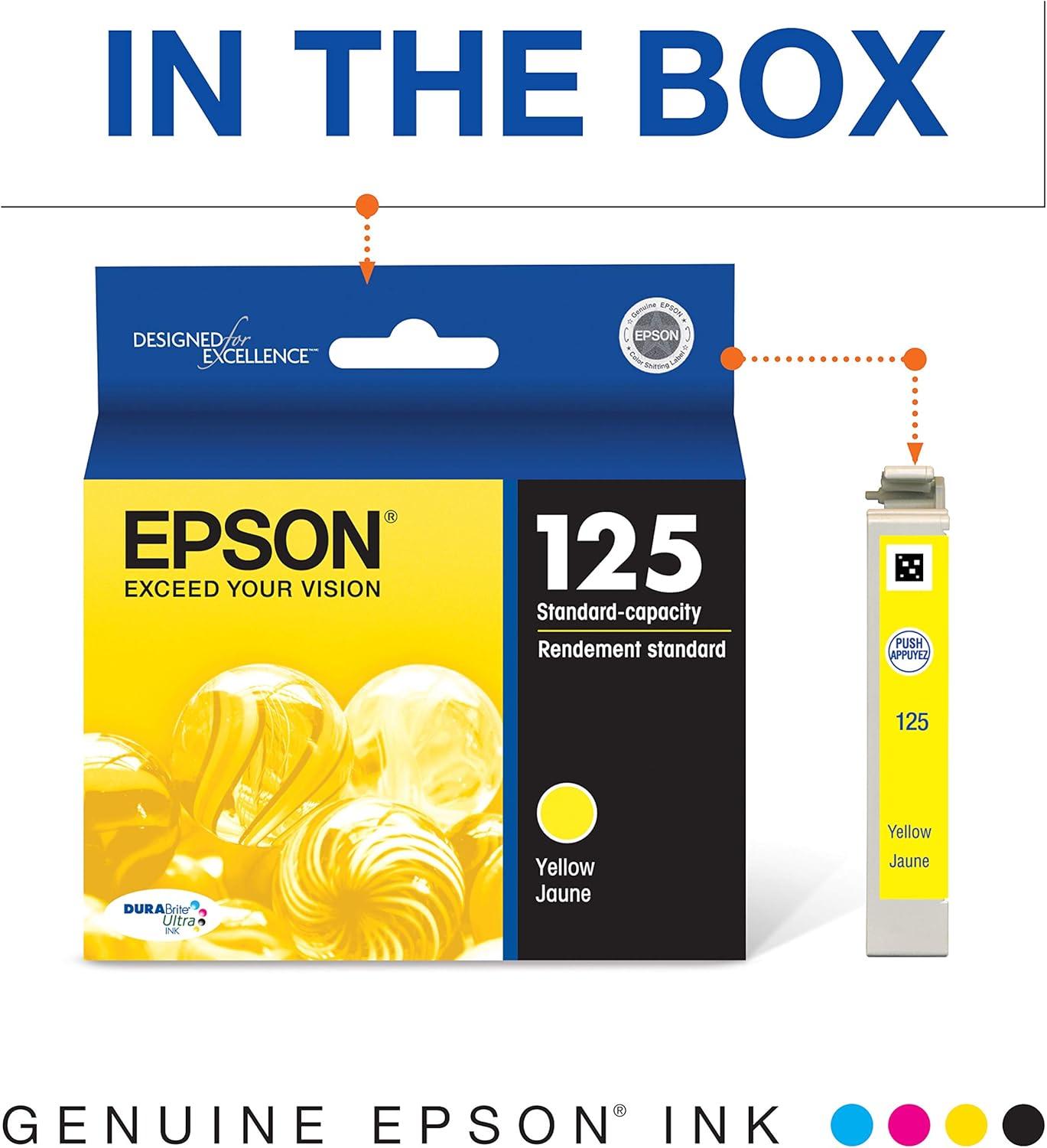 EPSON 125 DURABrite Ultra Ink Standard Capacity Yellow Cartridge (T125420) Works with Stylus NX-125, NX-127, NX-130, NX-230, NX-420, NX-530, NX-625, WorkForce WF-320, WF-323, WF-325, WF-520(1 Count (Pack of 1))