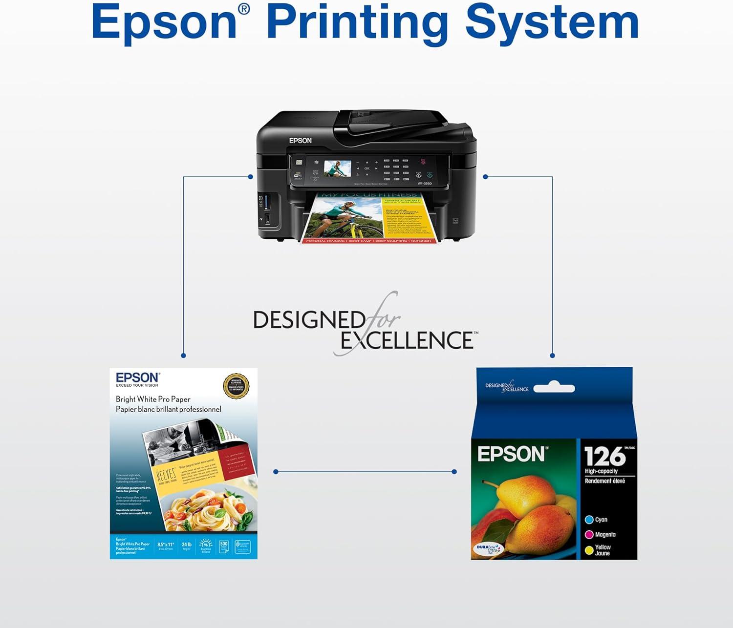 EPSON 126 DURABrite Ultra Ink Color Combo Pack For WF-3520, WF-3530, WF-3540, WF-520, WF-545, WF-630, WF-633, WF-635, WF-645, WF-7010, WF-7510, WF-7520, WF-840, WF-845 and other select models(Color Combo Pack)