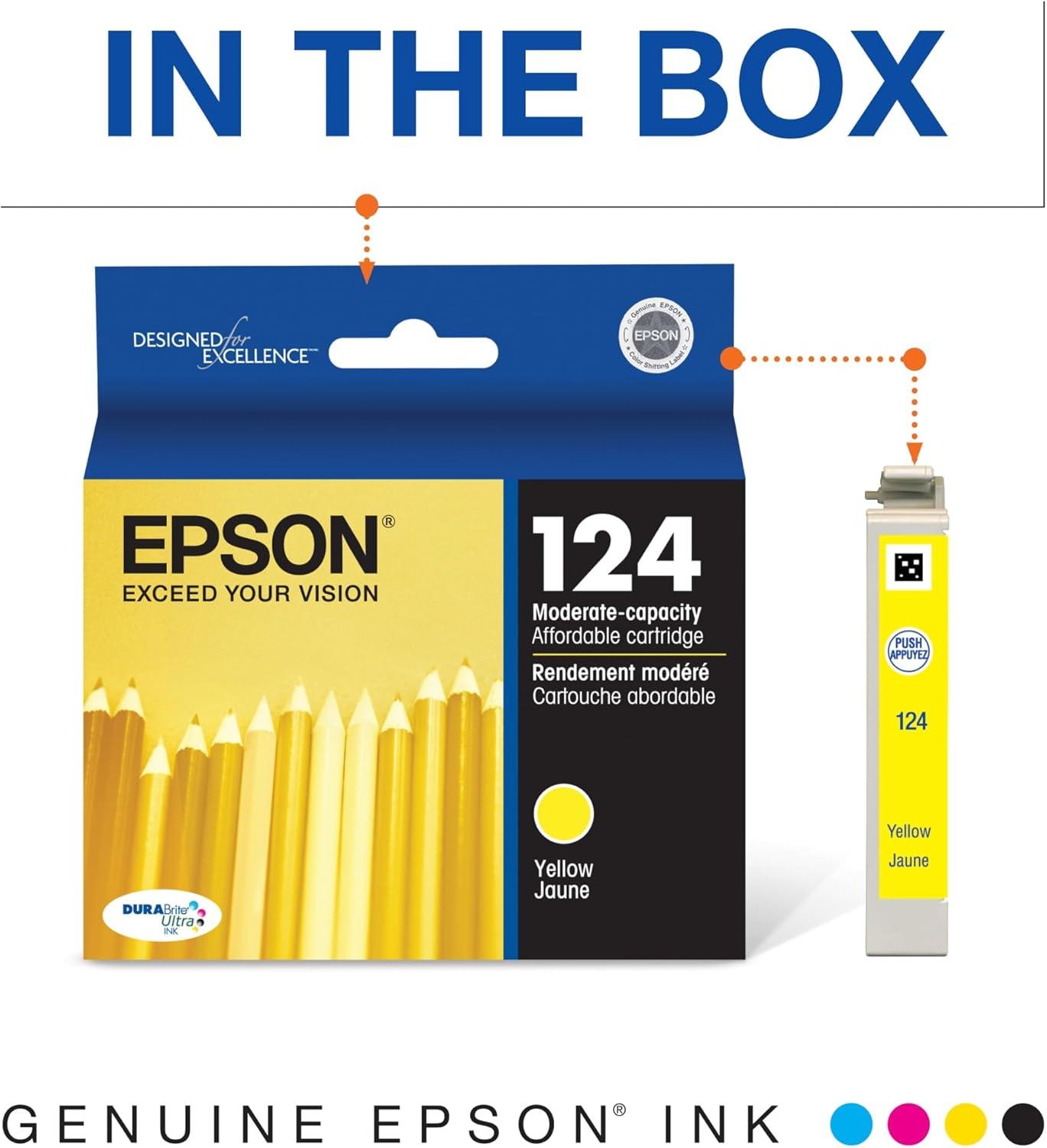 Epson 124 DURABrite Ultra Ink Standard Capacity Cyan Cartridge (T124220-S) Works with Stylus NX-125, NX-127, NX-130, NX-230, NX-330, NX-420, NX-430, Workforce WF-320, WF-323, WF-325, WF-435(Yellow)