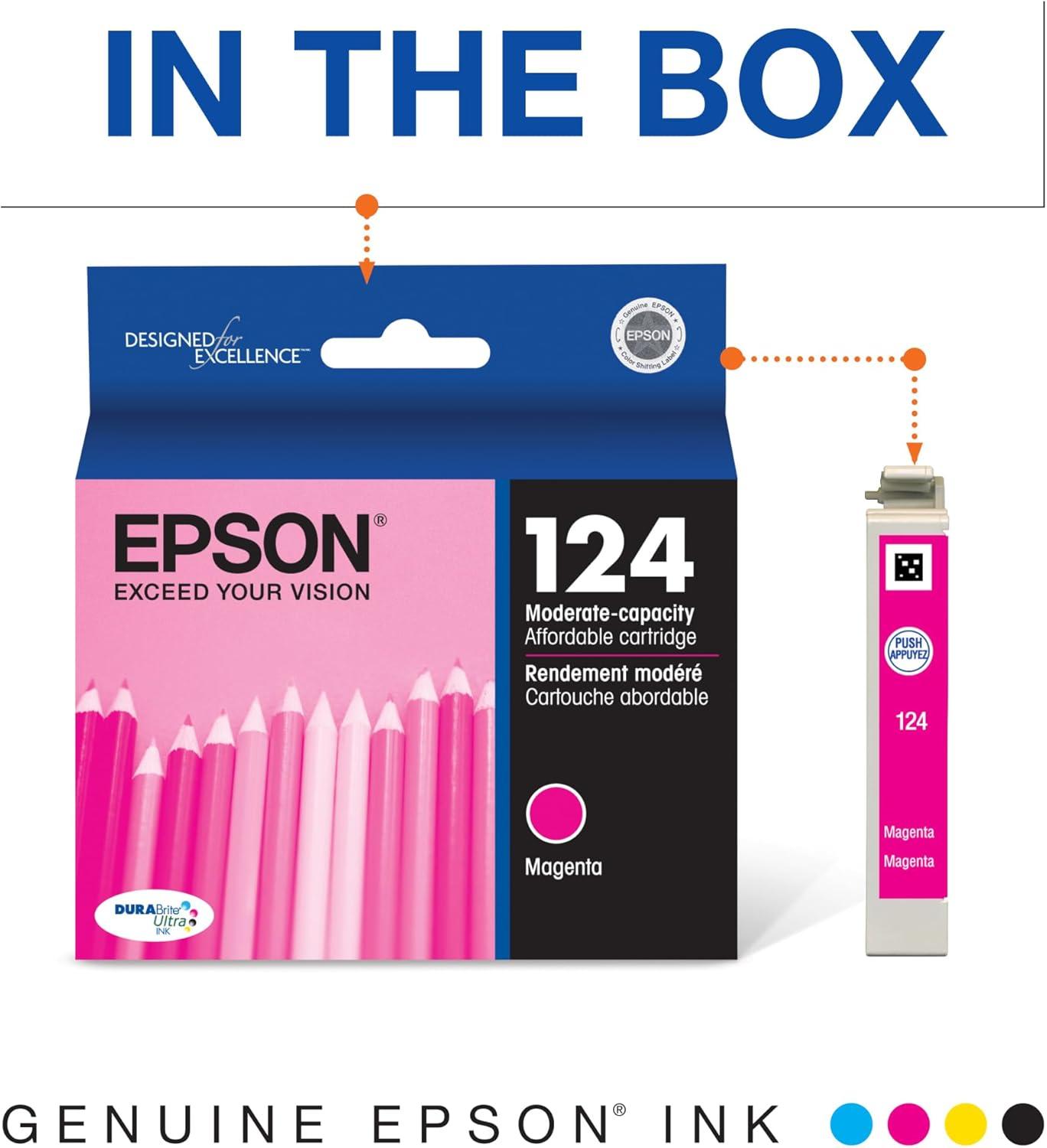 Epson 124 DURABrite Ultra Ink Standard Capacity Cyan Cartridge (T124220-S) Works with Stylus NX-125, NX-127, NX-130, NX-230, NX-330, NX-420, NX-430, Workforce WF-320, WF-323, WF-325, WF-435(Magenta)