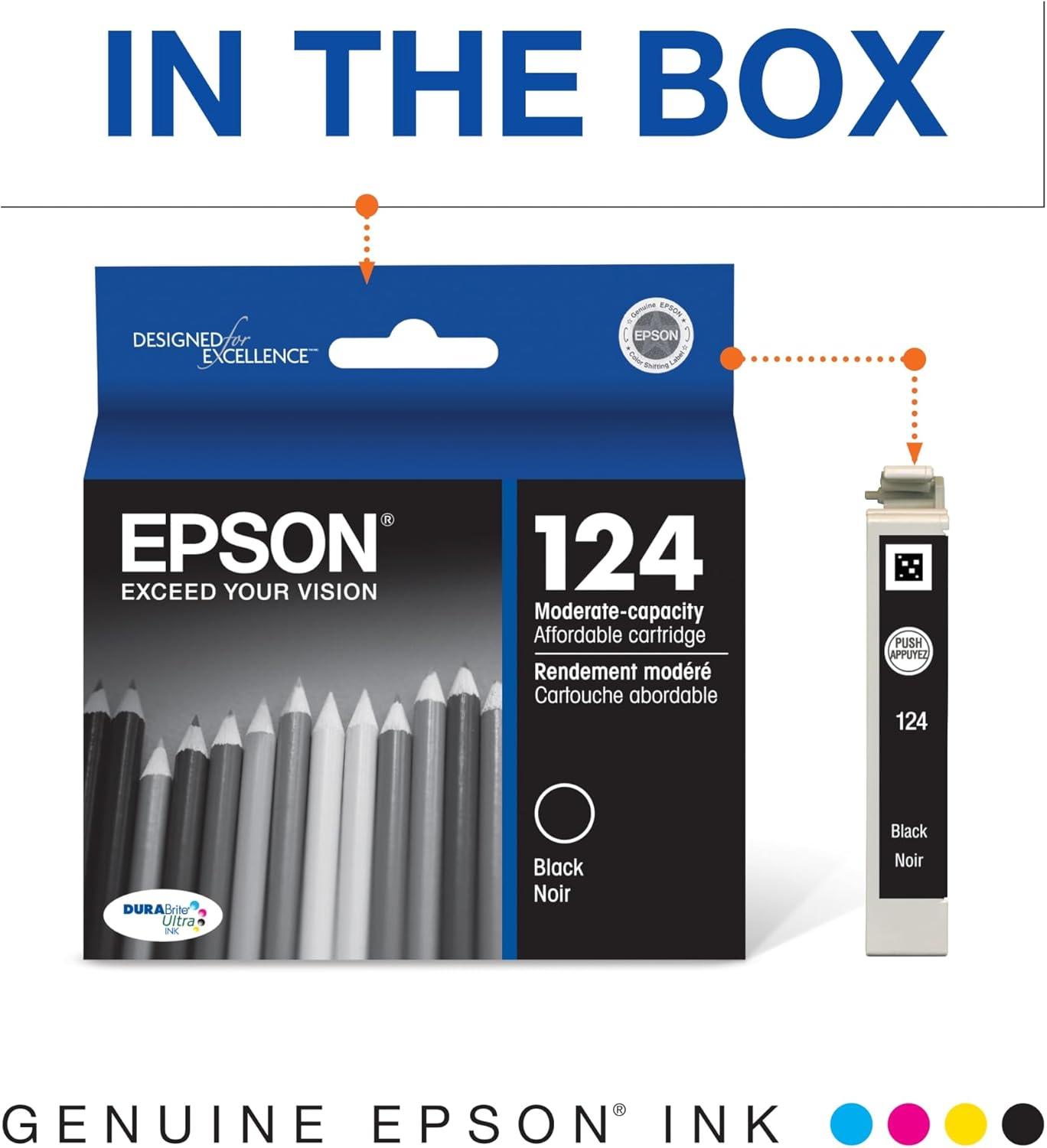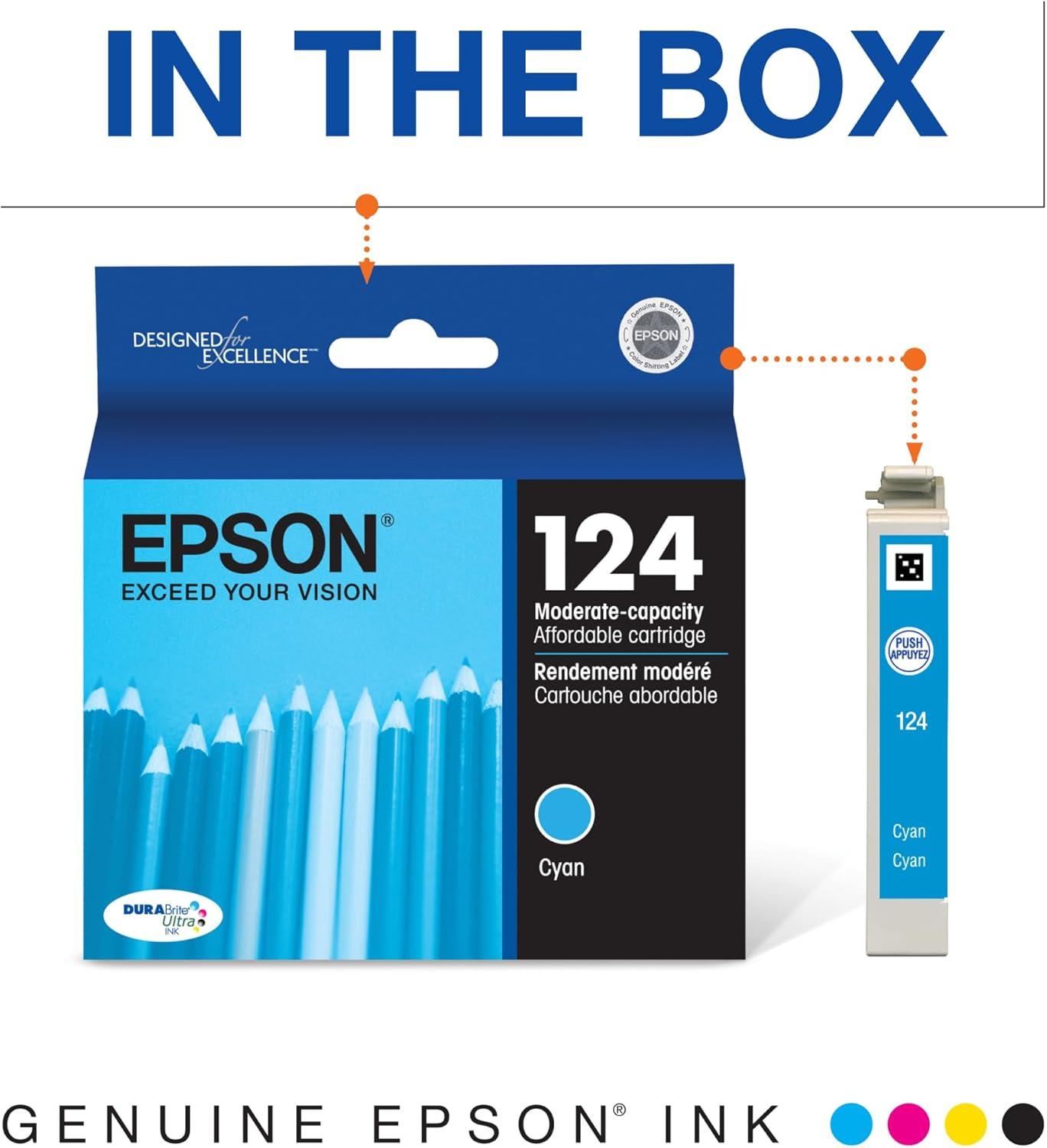 Epson 124 DURABrite Ultra Ink Standard Capacity Cyan Cartridge (T124220-S) Works with Stylus NX-125, NX-127, NX-130, NX-230, NX-330, NX-420, NX-430, Workforce WF-320, WF-323, WF-325, WF-435(Black)