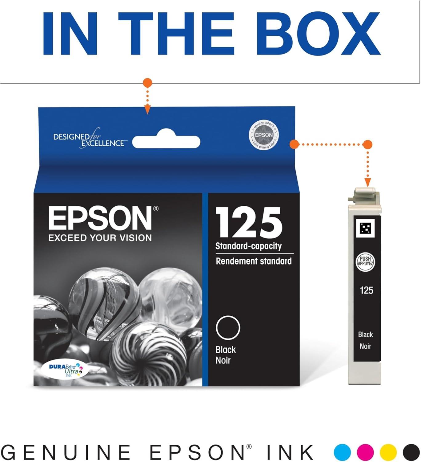 Epson 125 DURABrite Ultra Ink Standard Capacity Black Cartridge (T125120-S) Works with Stylus NX-125, NX-127, NX-130, NX-230, NX-420, NX-530, NX-625, Workforce WF-320, WF-323, WF-325, WF-520