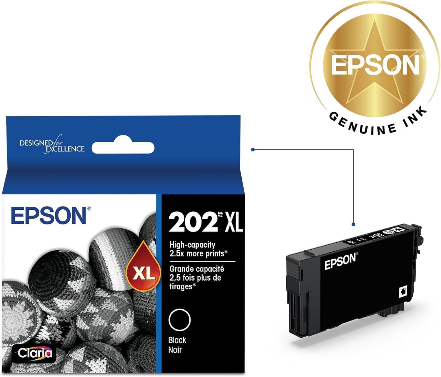 EPSON 202 Claria Ink High Capacity Yellow Cartridge (T202XL420-S) Works with WorkForce WF-2860, Expression XP-5100(Black)