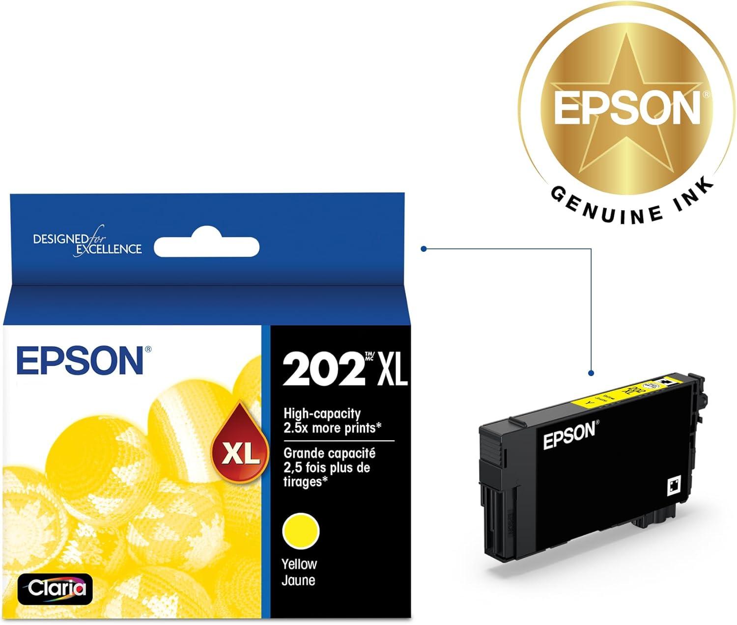 EPSON 202 Claria Ink High Capacity Yellow Cartridge (T202XL420-S) Works with WorkForce WF-2860, Expression XP-5100(Black and Color)