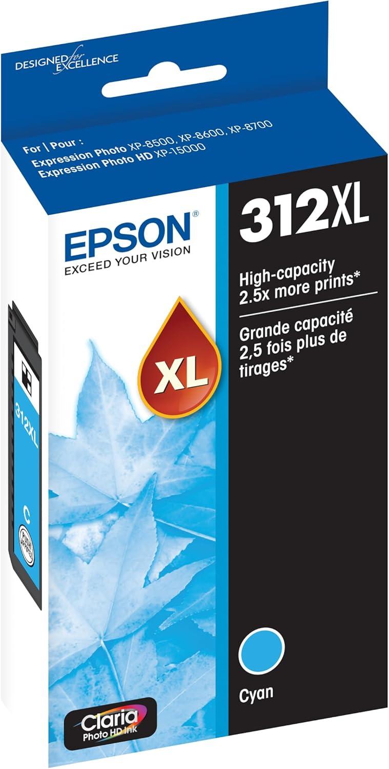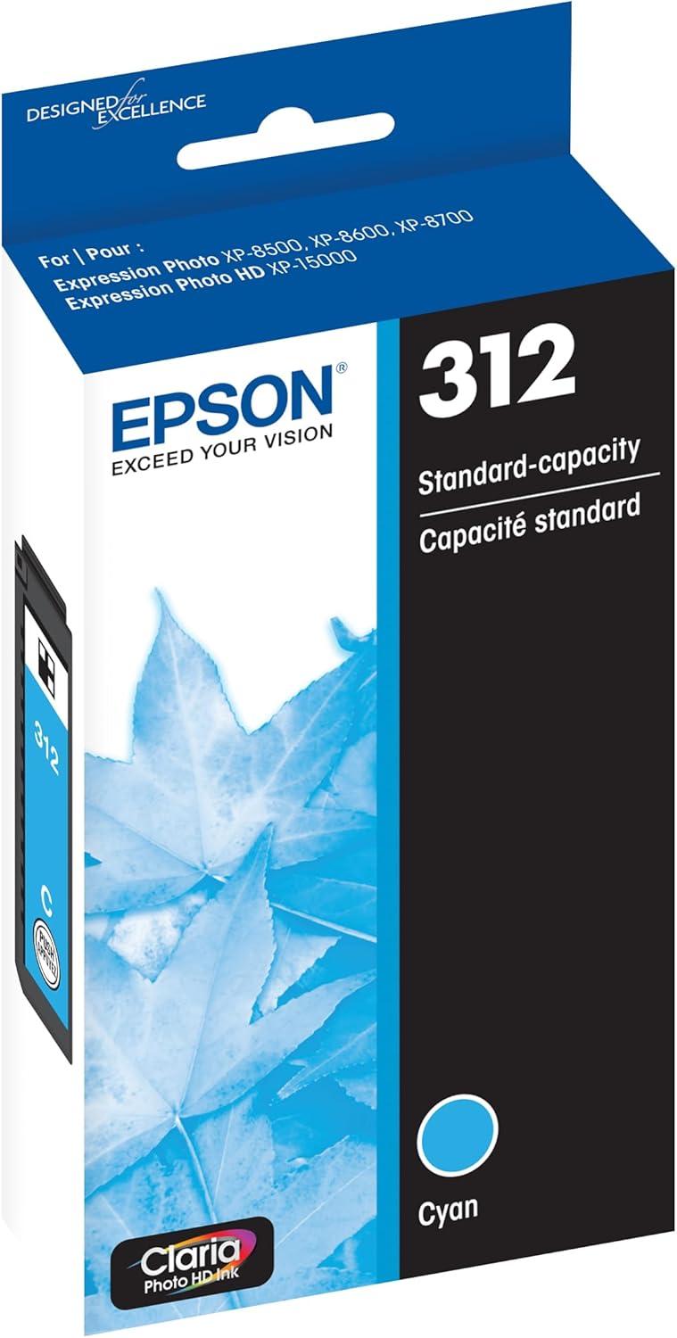 EPSON 312 Claria Photo HD Ink High Capacity Cyan Cartridge (T312XL220-S) Works with Expression Photo XP-8500, XP-8600, XP-8700, XP-15000(1 Count (Pack of 1))