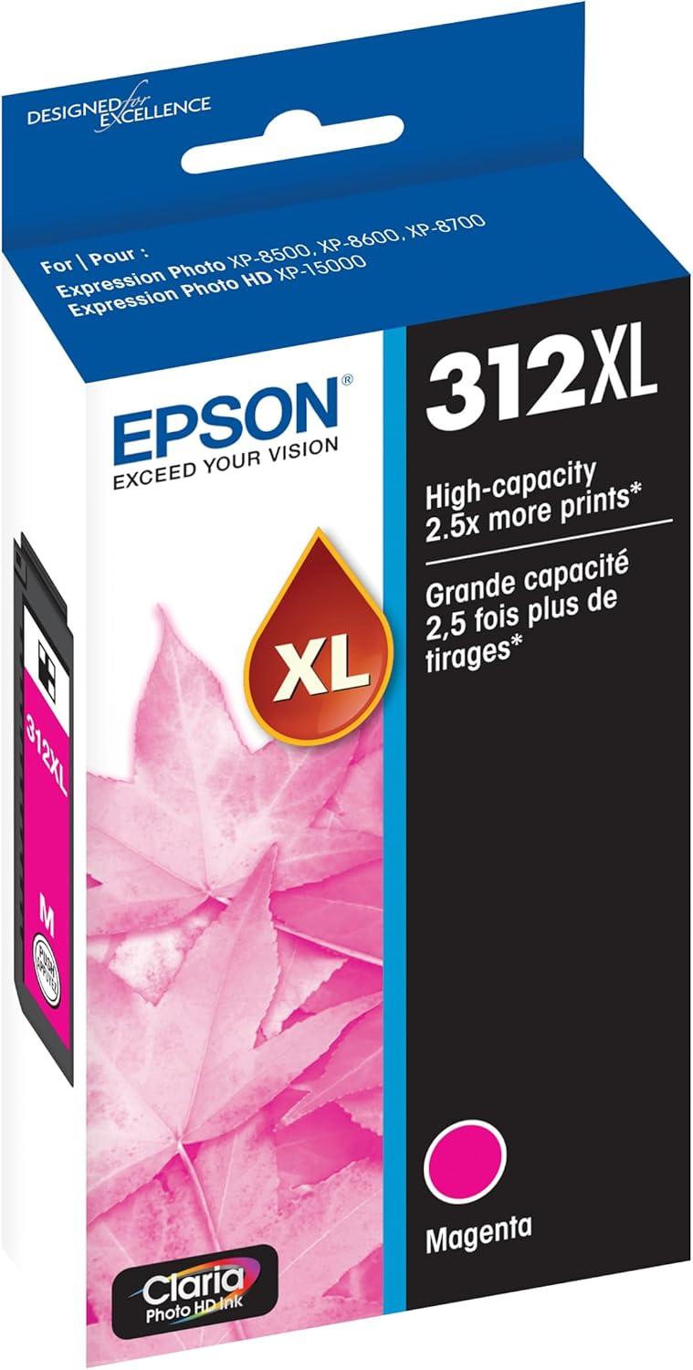 EPSON 312 Claria Photo HD Ink High Capacity Magenta Cartridge (T312XL320-S) Works with Expression Photo XP-8500, XP-8600, XP-8700, XP-15000(1 Count (Pack of 1))