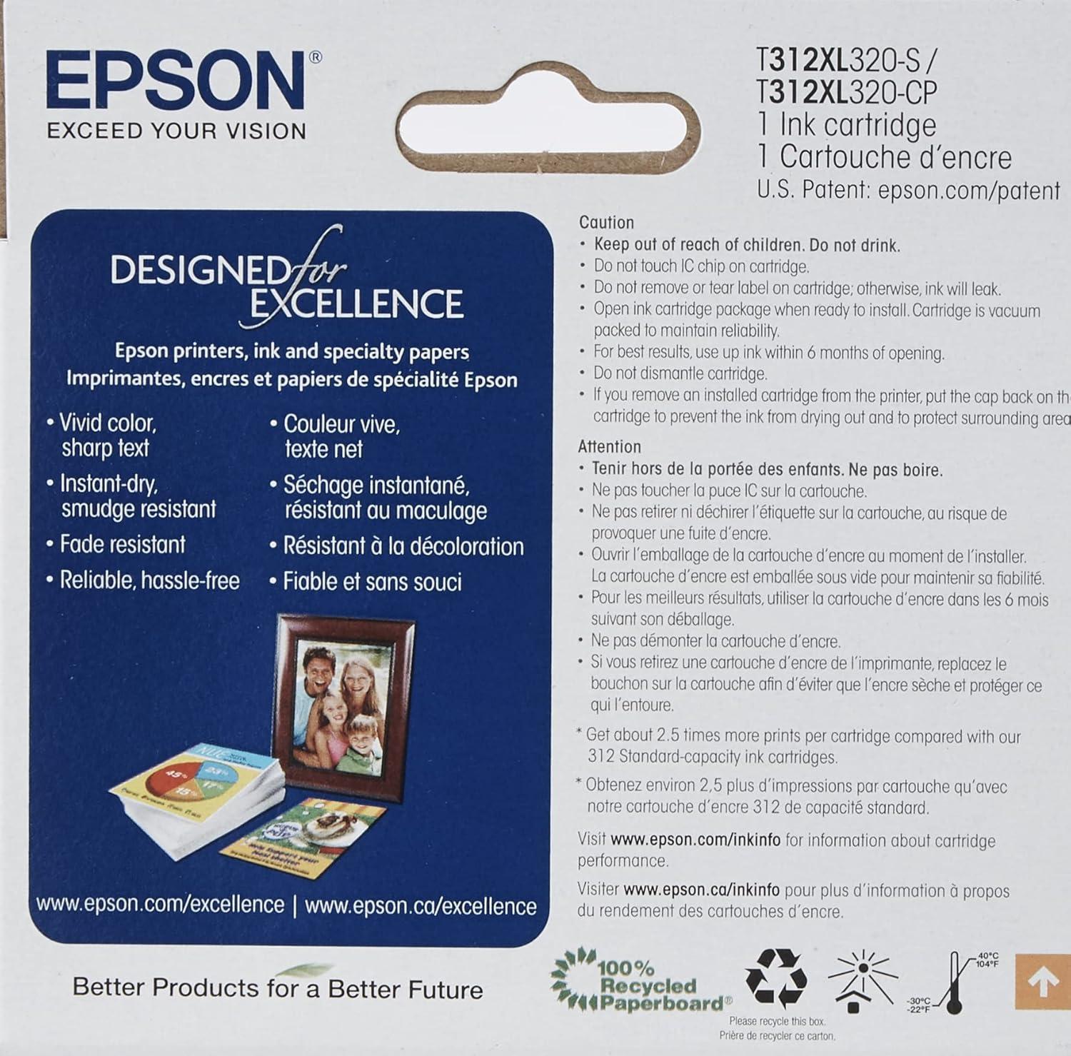 EPSON 312 Claria Photo HD Ink High Capacity Black Cartridge (T312XL120-S) Works with Expression Photo XP-8500, XP-8600, XP-8700, XP-15000(1 Count (Pack of 1))