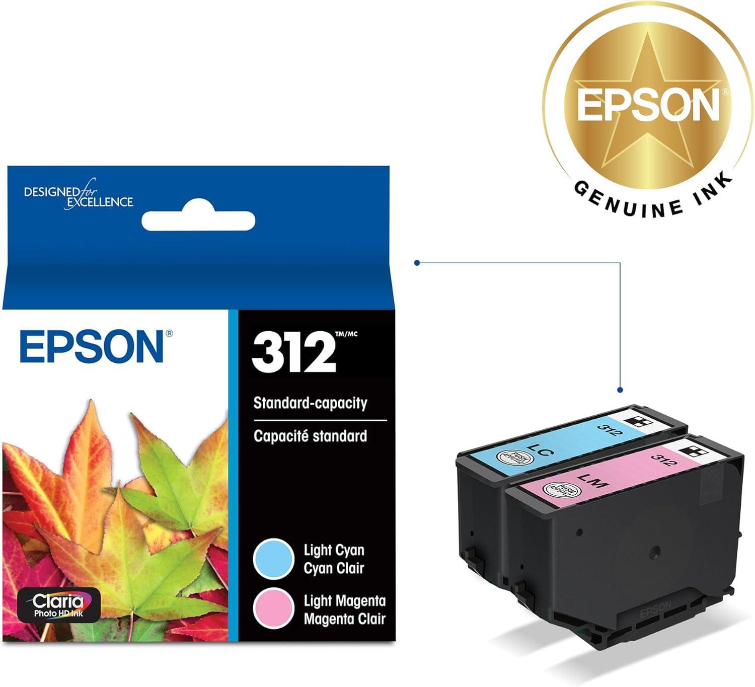 EPSON 312 Claria Photo HD Ink Standard Capacity (T312922-S) Works with Expression Photo XP-8500, XP-8600, XP-8700, XP-15000, Light cyan/light magenta(2 Count (Pack of 1))