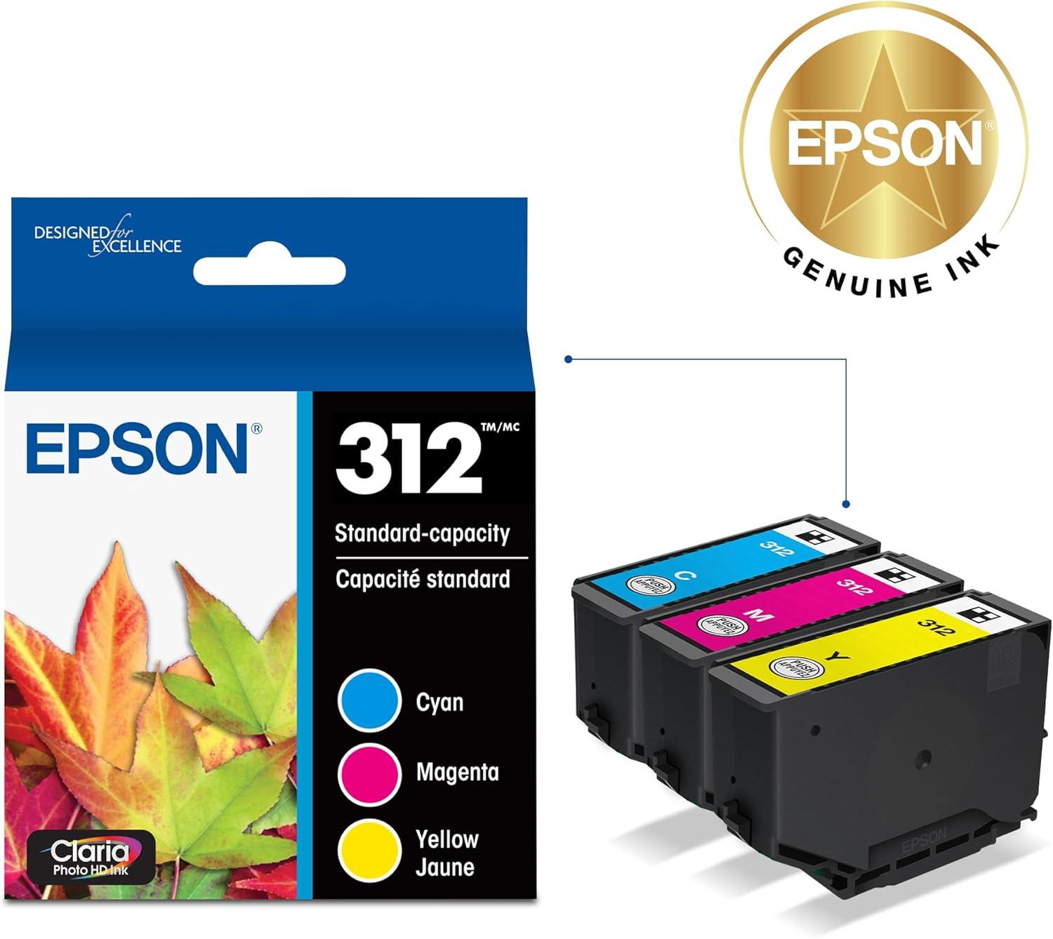 EPSON 312 Claria Photo HD Ink Standard Capacity (T312923-S) Works with Expression Photo XP-8500, XP-8600, XP-8700, XP-15000, Cyan,Magenta and Yellow(Cartridge Ink)