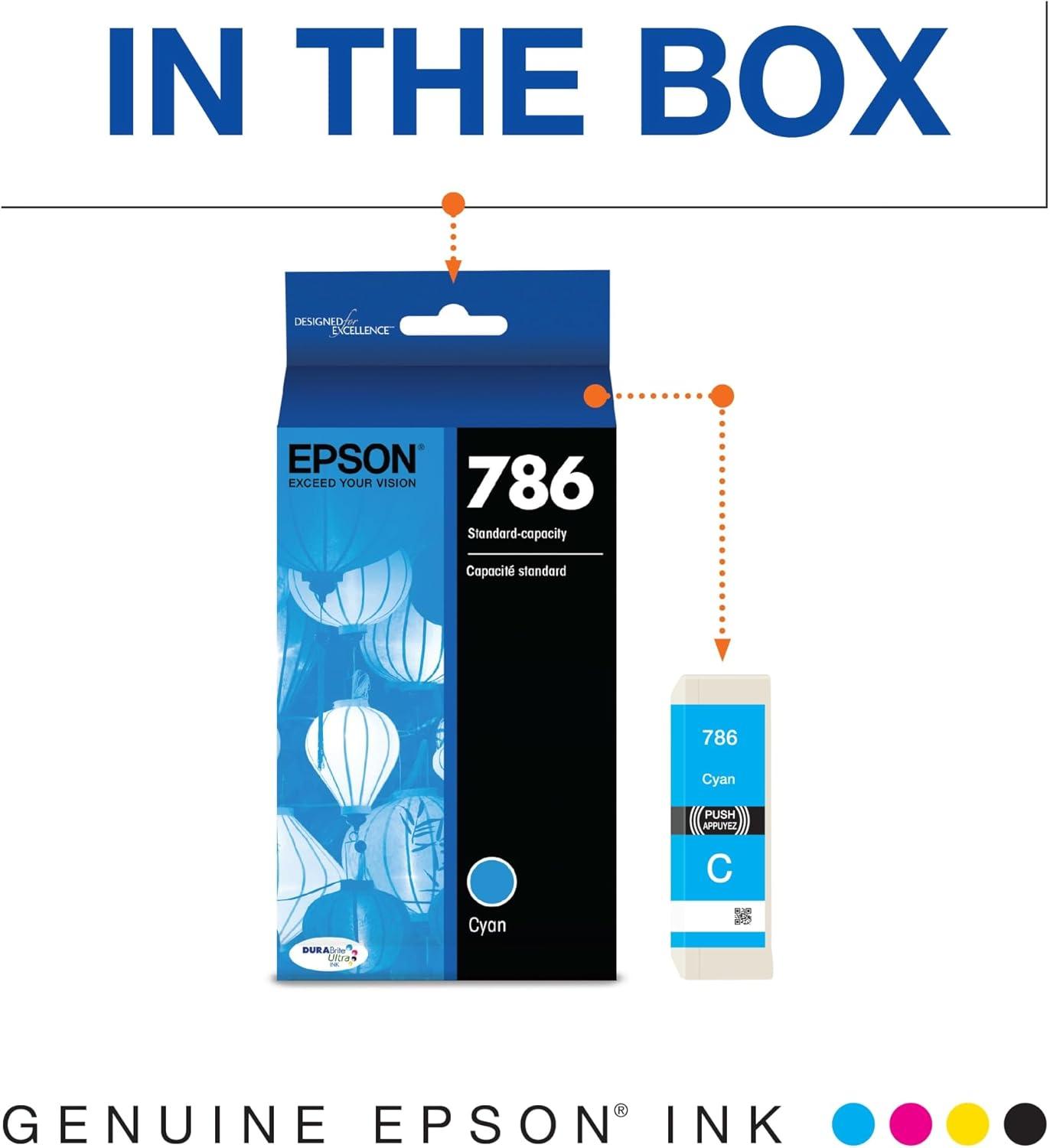 EPSON 786 DURABrite Ultra Ink Standard Capacity Cyan Cartridge (T786220) Works with WorkForce WF-5110, WF-5190, WF-5620, WF-5690