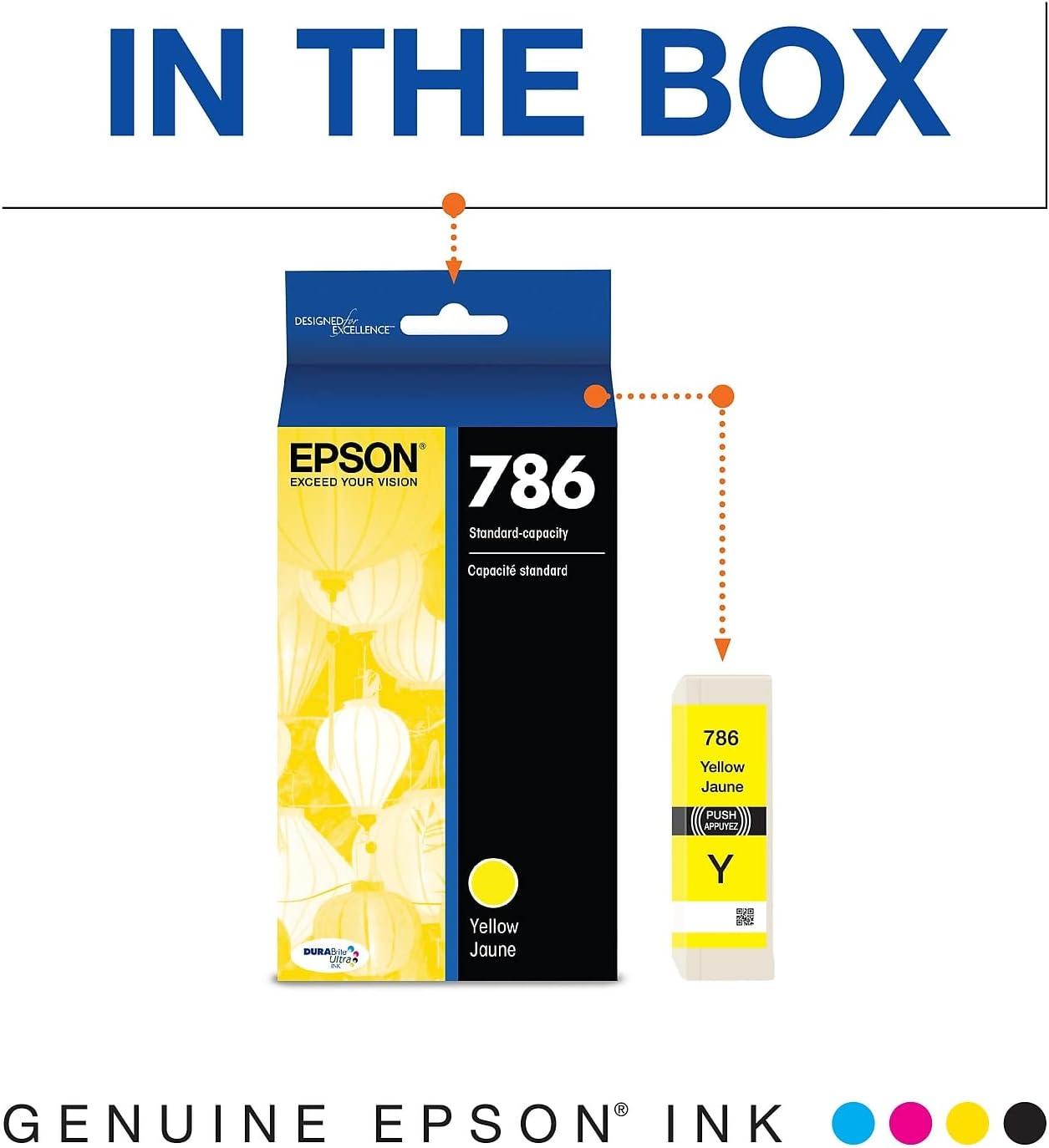 Epson 786 DURABrite Ultra Ink Standard Capacity Yellow Cartridge (T786420) Works with Workforce WF-5110, WF-5190, WF-5620, WF-5690