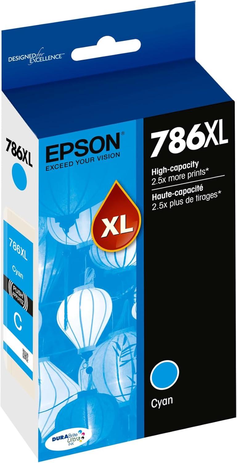 Epson T786 DURABrite Ultra Ink High Capacity Black Cartridge (T786XL120-S) for Select Workforce Printers(Cyan)