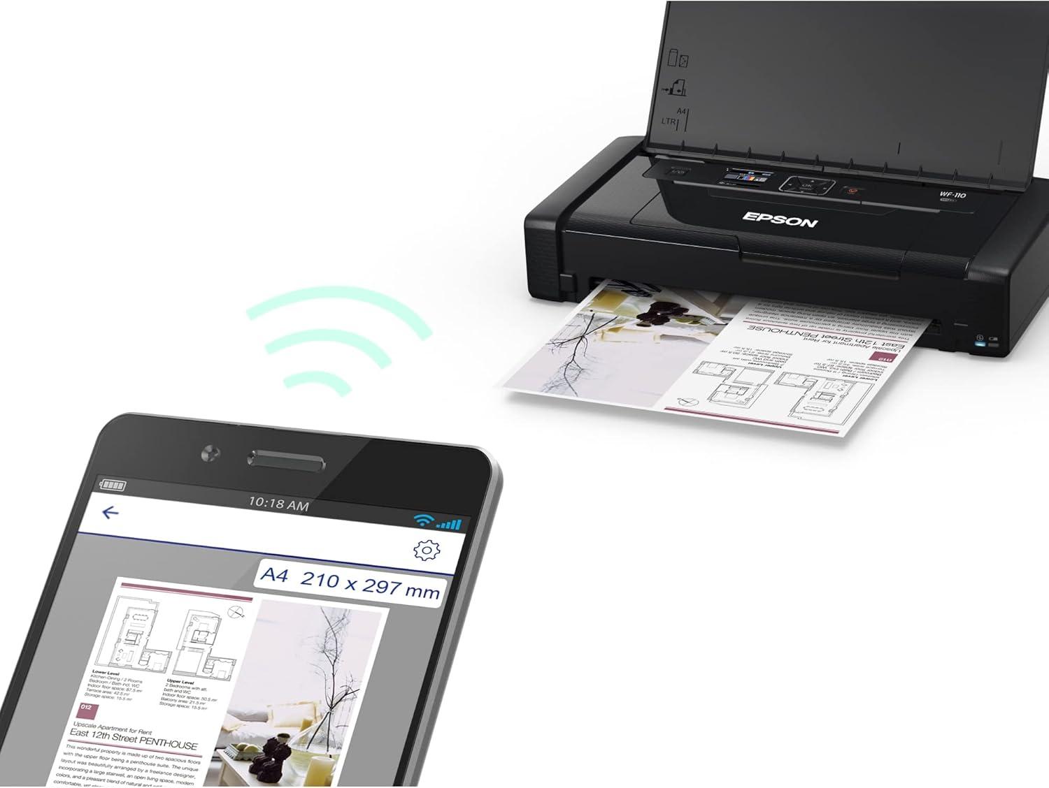 Epson Workforce WF-110 Wireless Color Mobile Printer, Black, Small(Printer)