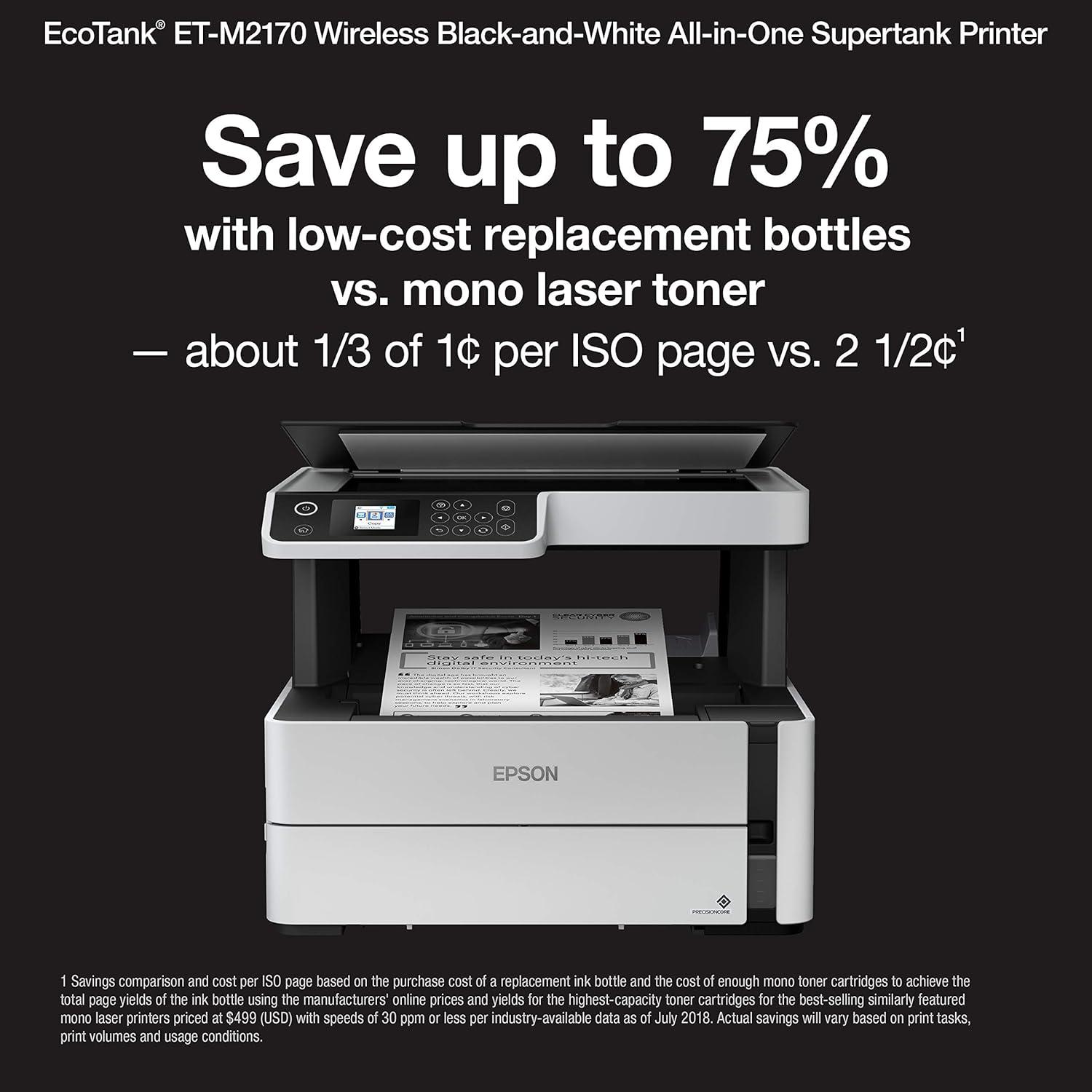 Epson EcoTank ET-M2170 Wireless Monochrome All-in-One Supertank Printer with Ethernet PLUS 2 Years of Unlimited Ink*,White(ET-M2170)