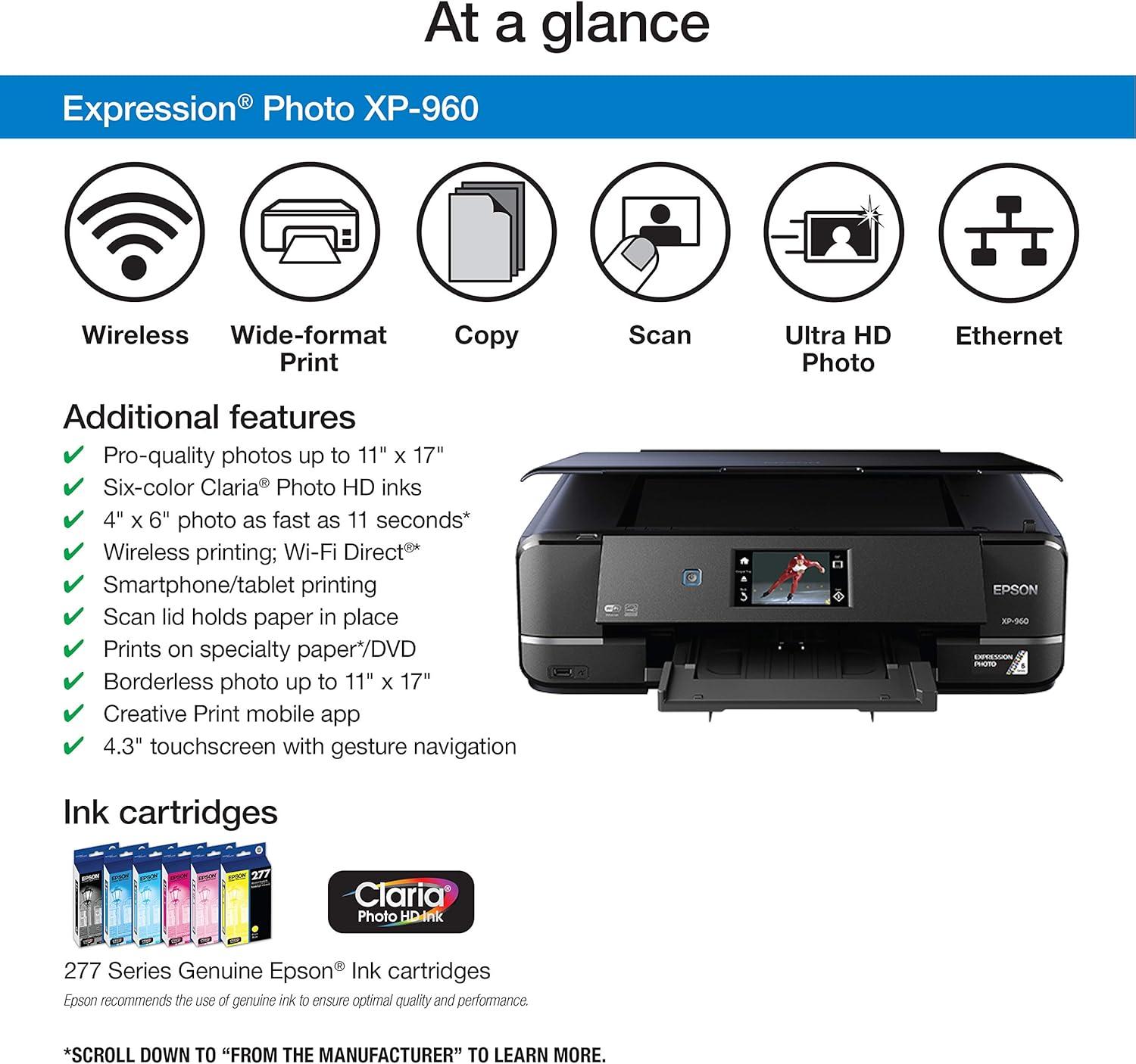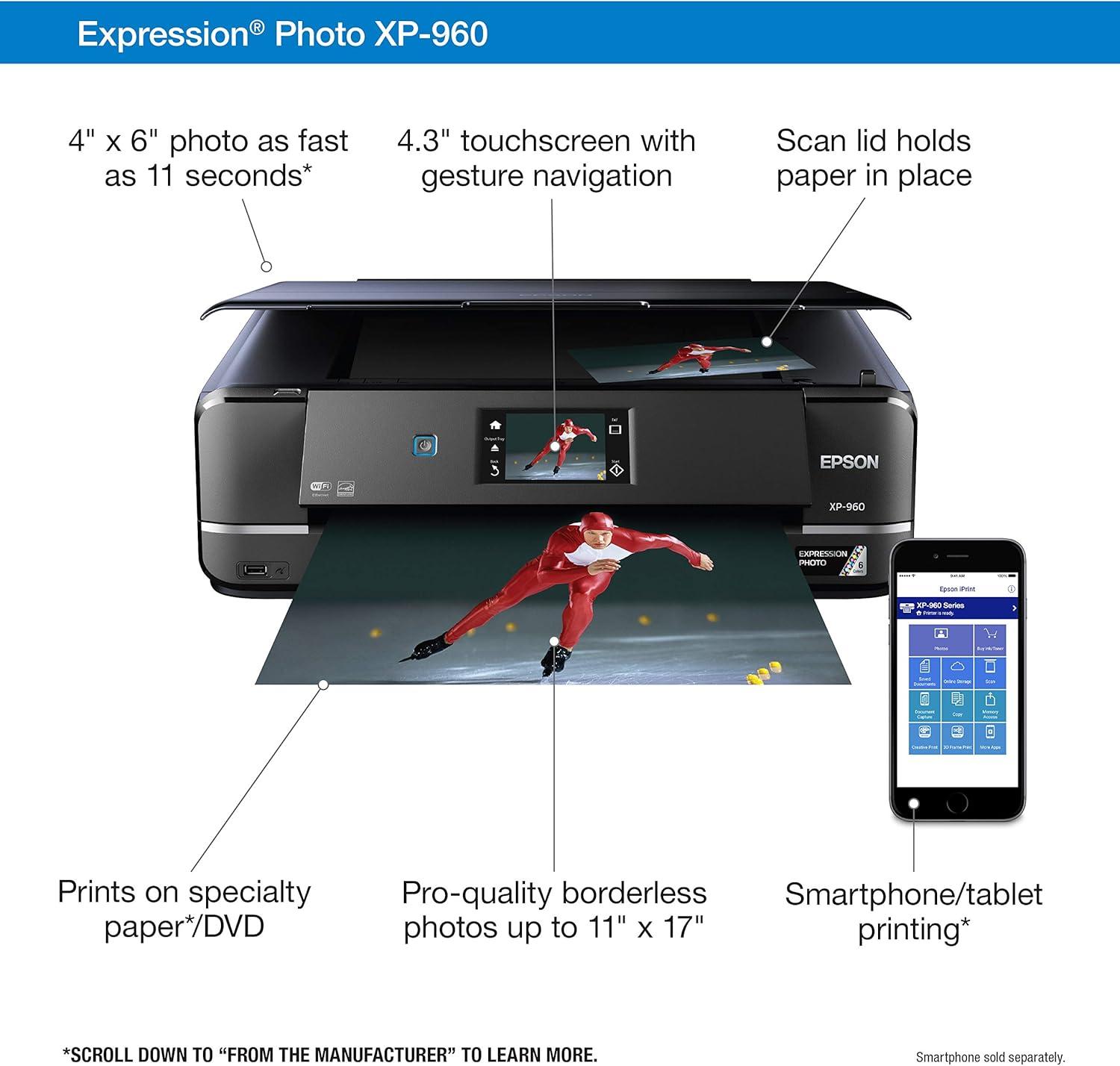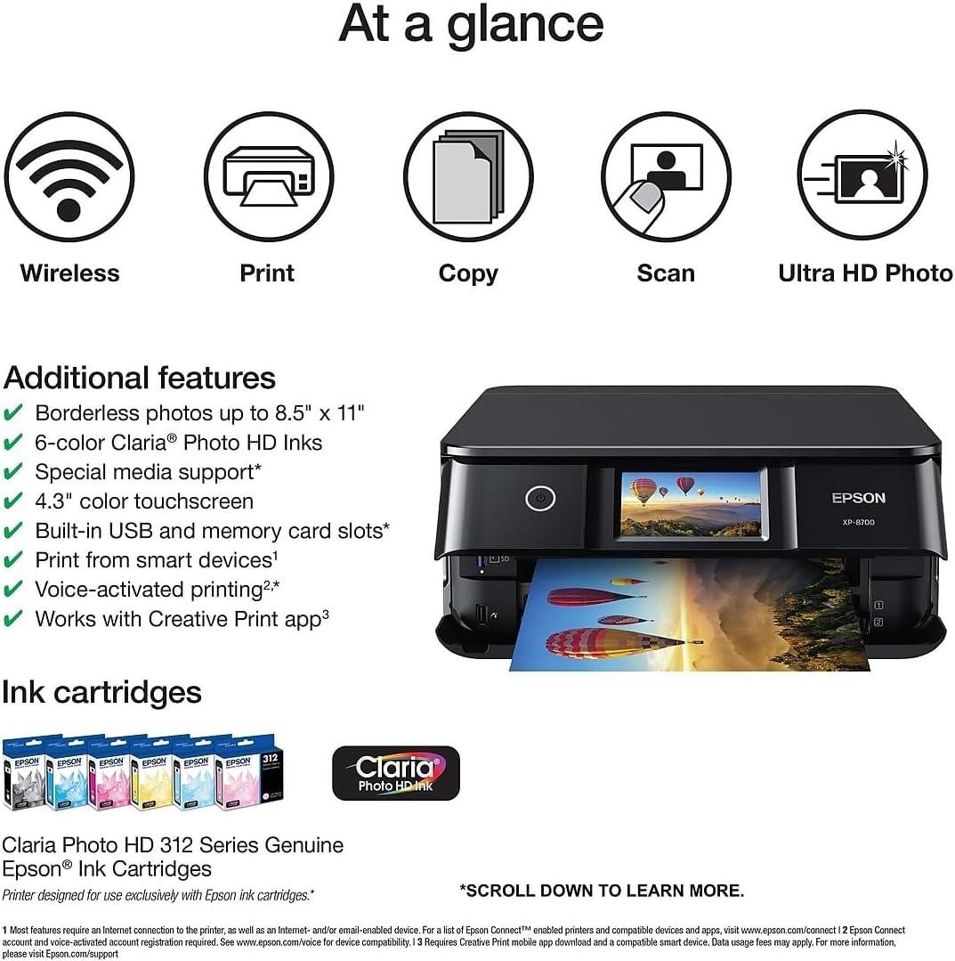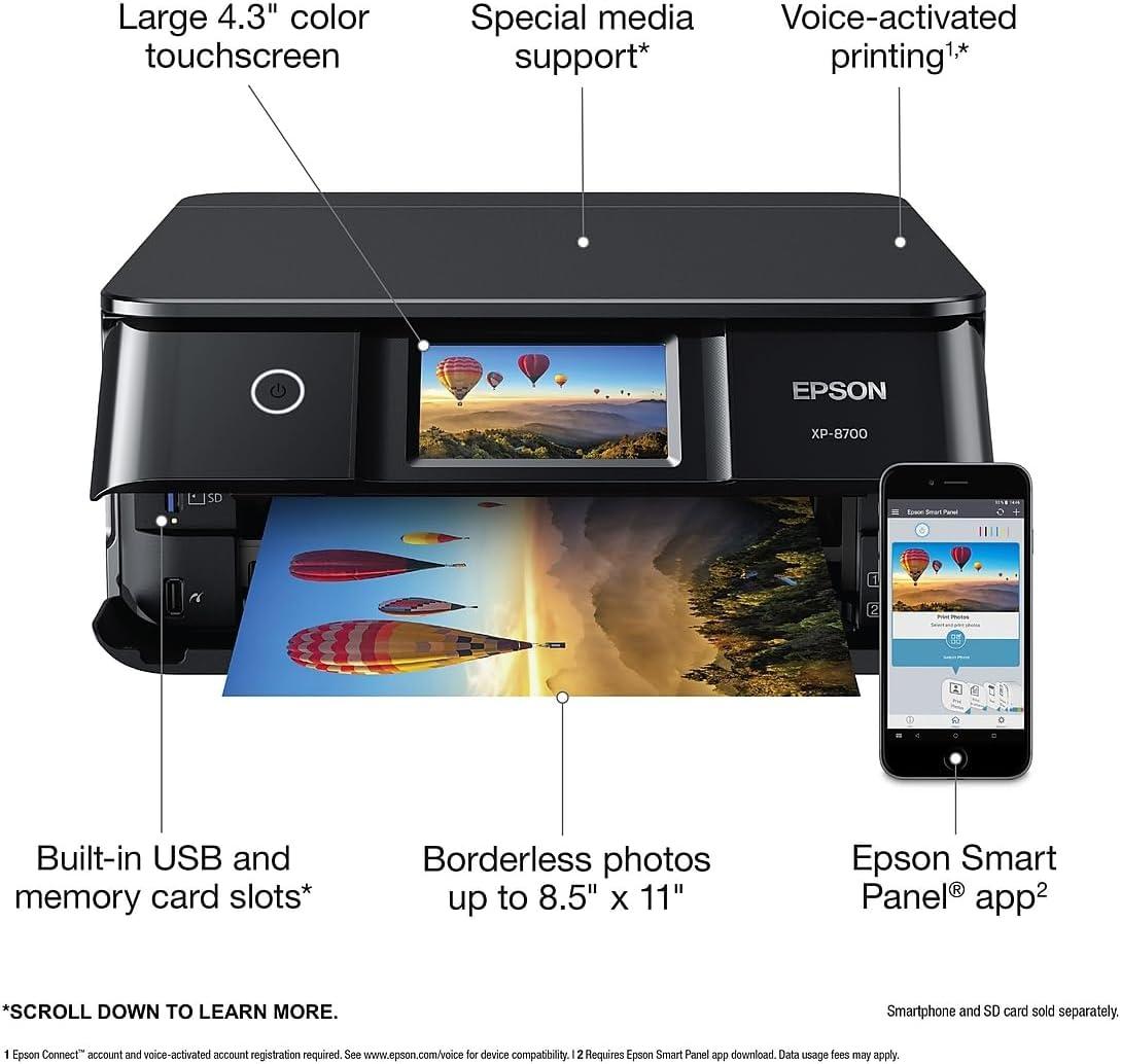 Epson Expression Photo XP-8700 Wireless All-in-One Printer with Built-in Scanner and Copier and 4.3″ Color Touchscreen, Black