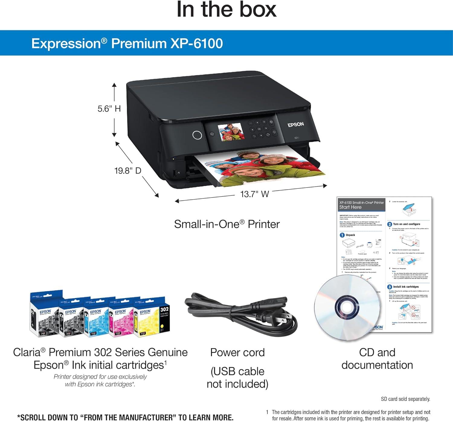 Epson Expression Premium XP-7100 Wireless Color Photo Printer with ADF, Scanner and Copier, Black, Small(XP-6100)
