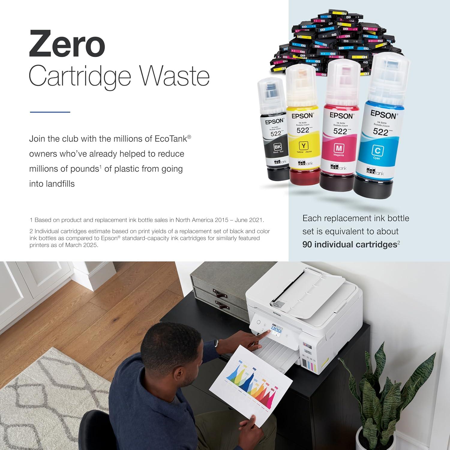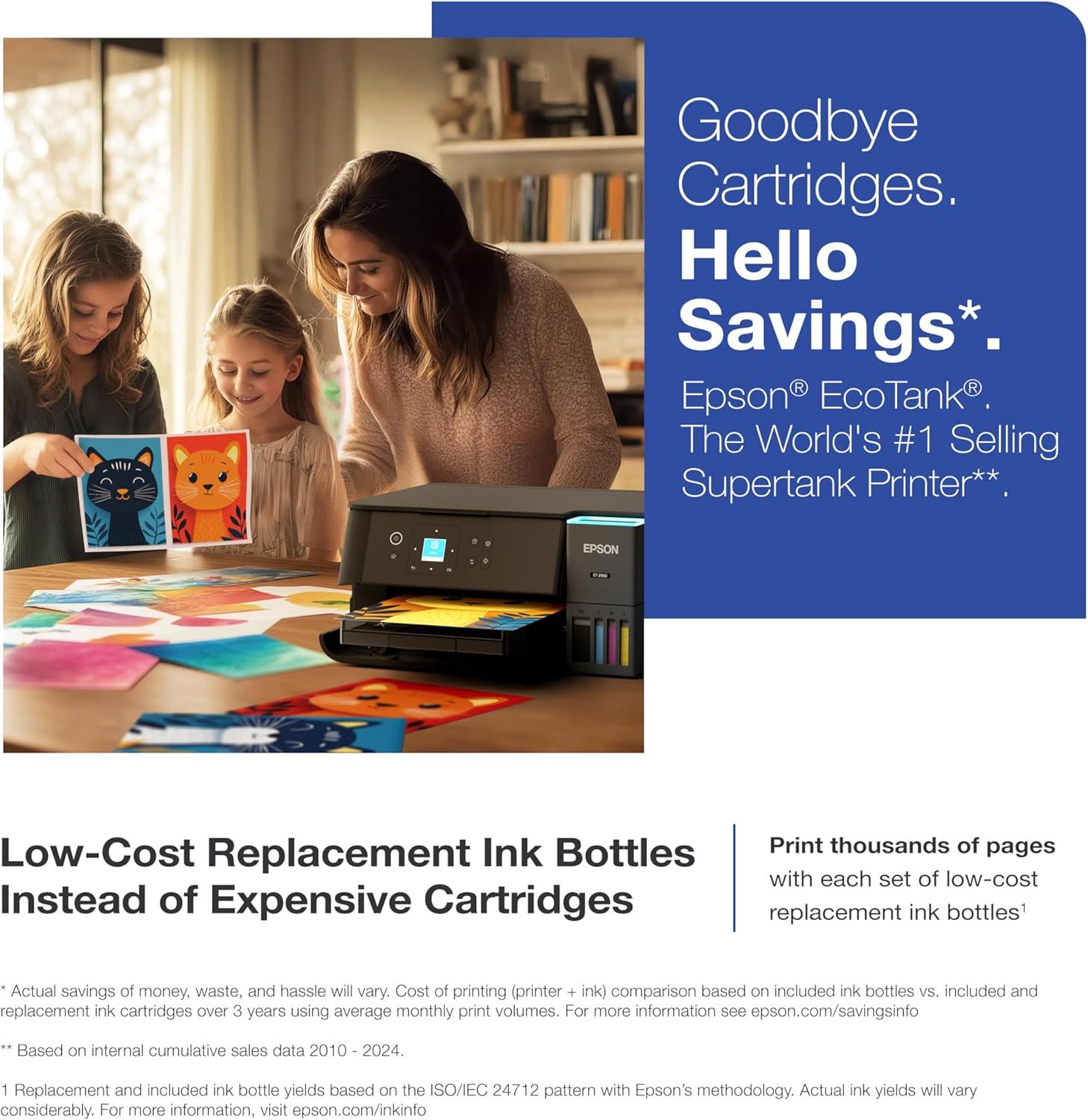 Epson EcoTank ET-2980 Wireless All-in-One Color Supertank Printer with up to 3 Years of Ink, Refillable Tanks, Perfect for Home, 15 PPM, 1.44″ Color Screen, Auto 2-Sided Printing – White(Black)