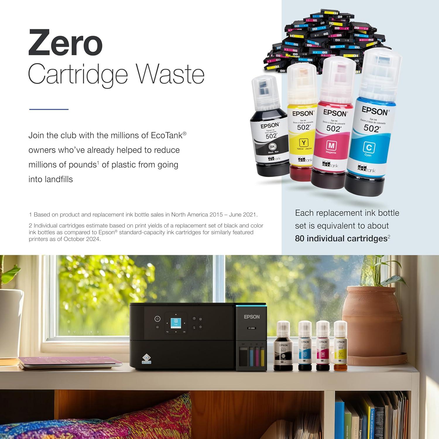 Epson EcoTank ET-2850 Wireless Color All-in-One Cartridge-Free Supertank Printer with Scan, Copy and Auto 2-Sided Printing – Black, Medium(Black)