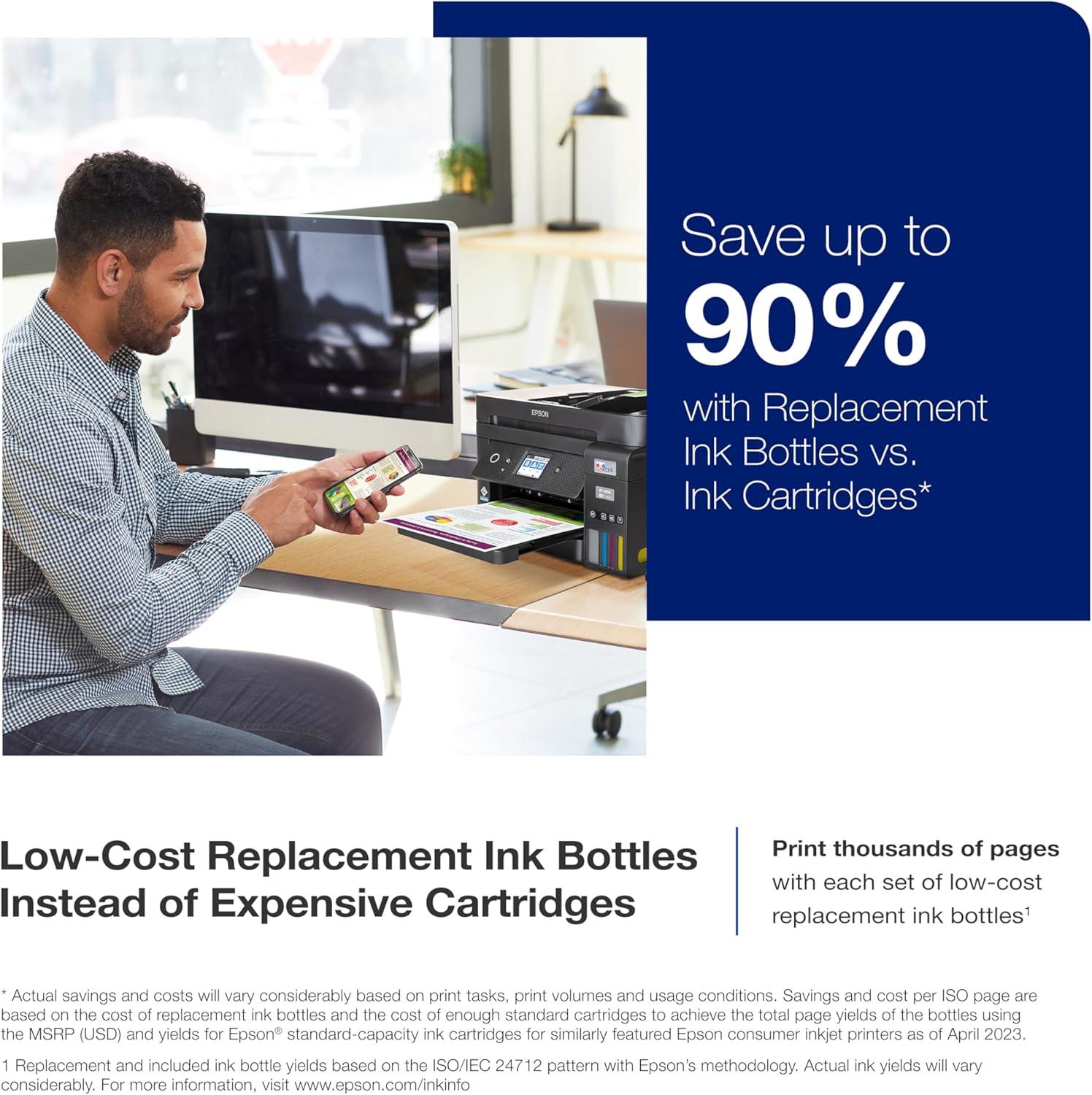 Epson EcoTank ET-4850 Wireless All-in-One Cartridge-Free Supertank Printer with Scanner, Copier, Fax, ADF and Ethernet (White) (Renewed)