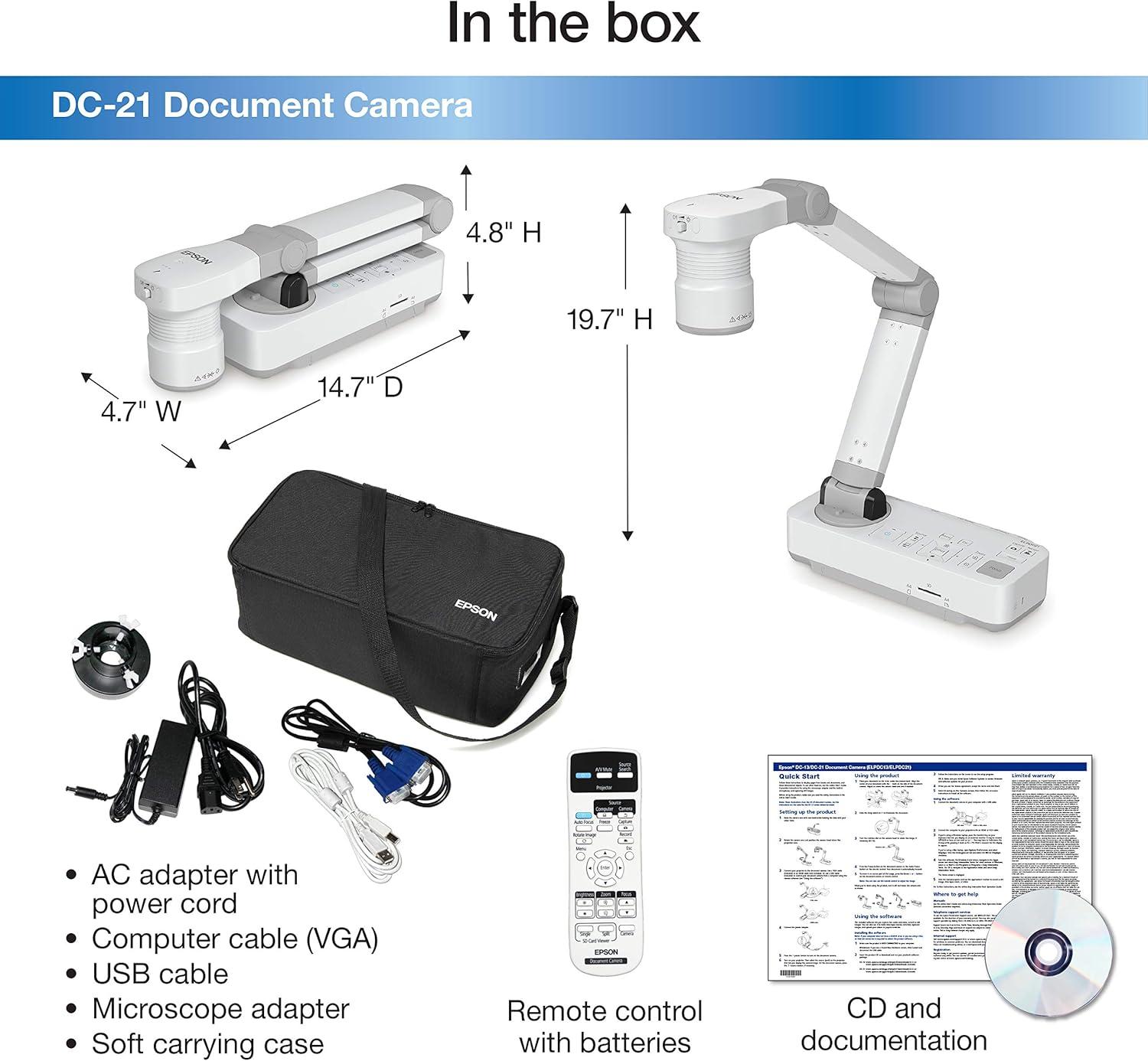 Epson DC-13 High-Definition Document Camera with HDMI, 16x Digital Zoom and 1080p Resolution,White(DC-21 – 1080p 21x Optical Zoom)