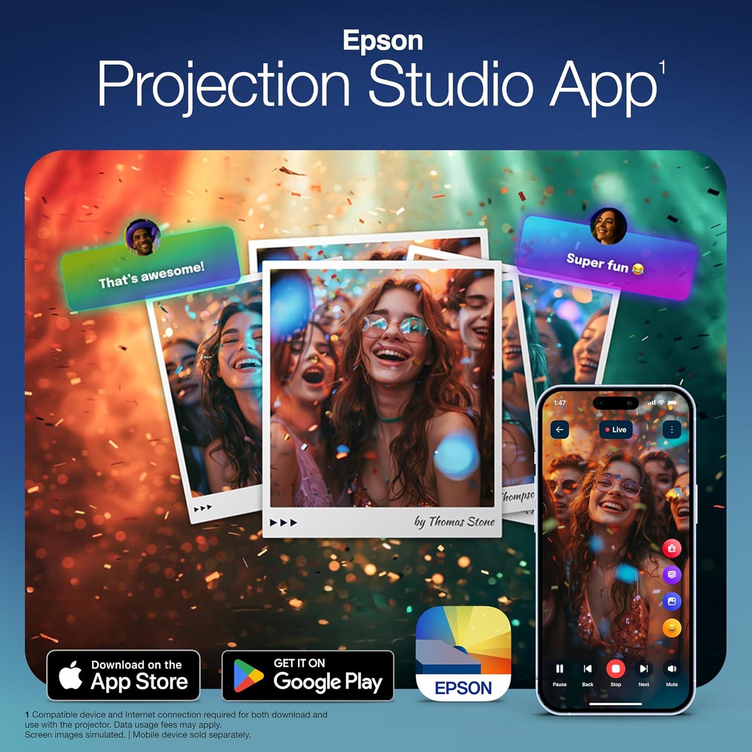 Epson Lifestudio Pop Full HD Personal Lifestyle Projector, 700 Lumens of Color and White Brightness, Sound by Bose Technology, Google TV, 3-Chip 3LCD Triple Core Engine, Epson Projection Studio App