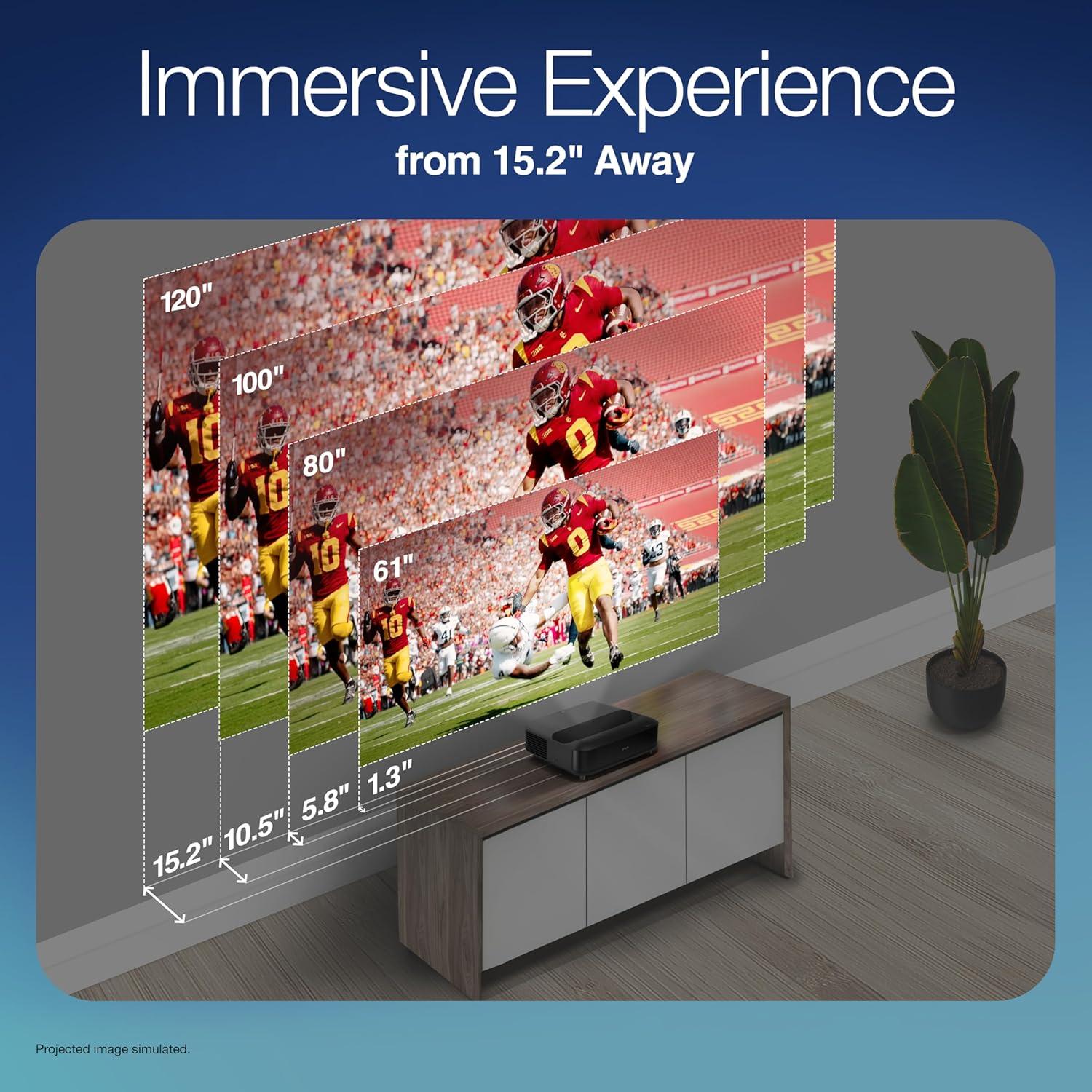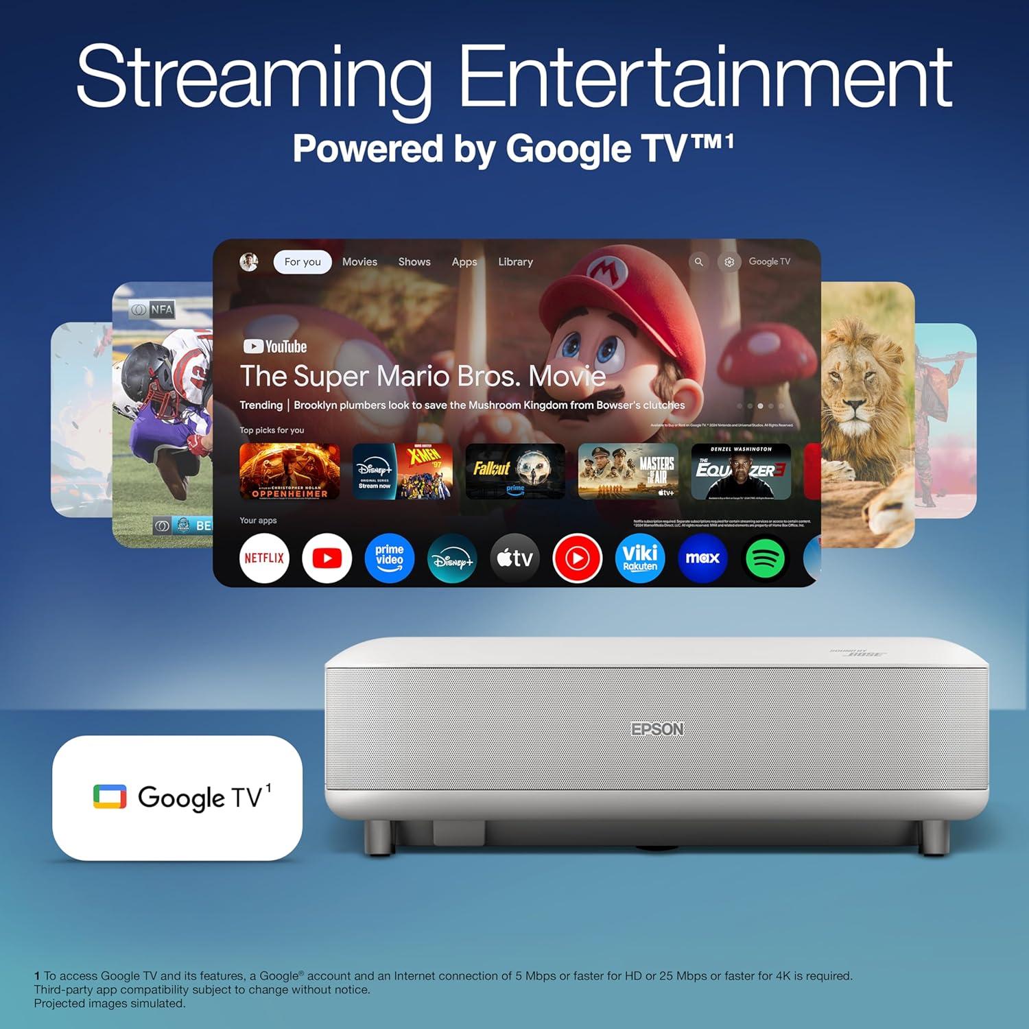 Epson Lifestudio Grand Ultra Short Throw Laser Projector, 4K PRO-UHD, Sound by Bose Technology and Epson Studio App, Built-In Google TV for Easy Streaming, Plus 3-Chip 3LCD Technology — Black(Black)