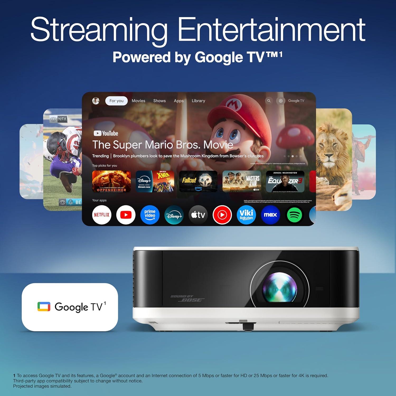 Epson Lifestudio Flex Plus 4K PRO-UHD Portable Lifestyle Projector, 1,000 Lumens of Color and White Brightness, Sound by Bose, Google TV, 3-Chip 3LCD Triple Core Engine, Epson Projection Studio App