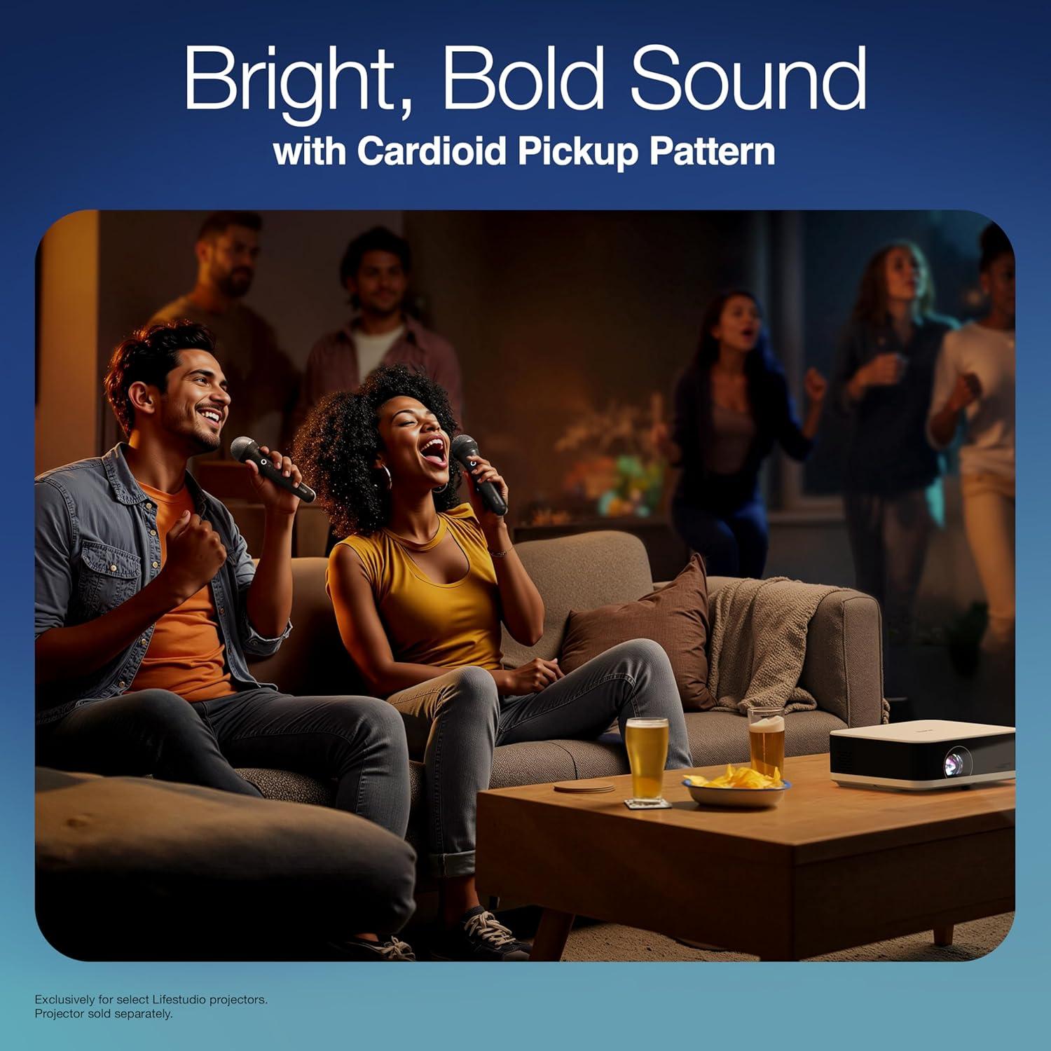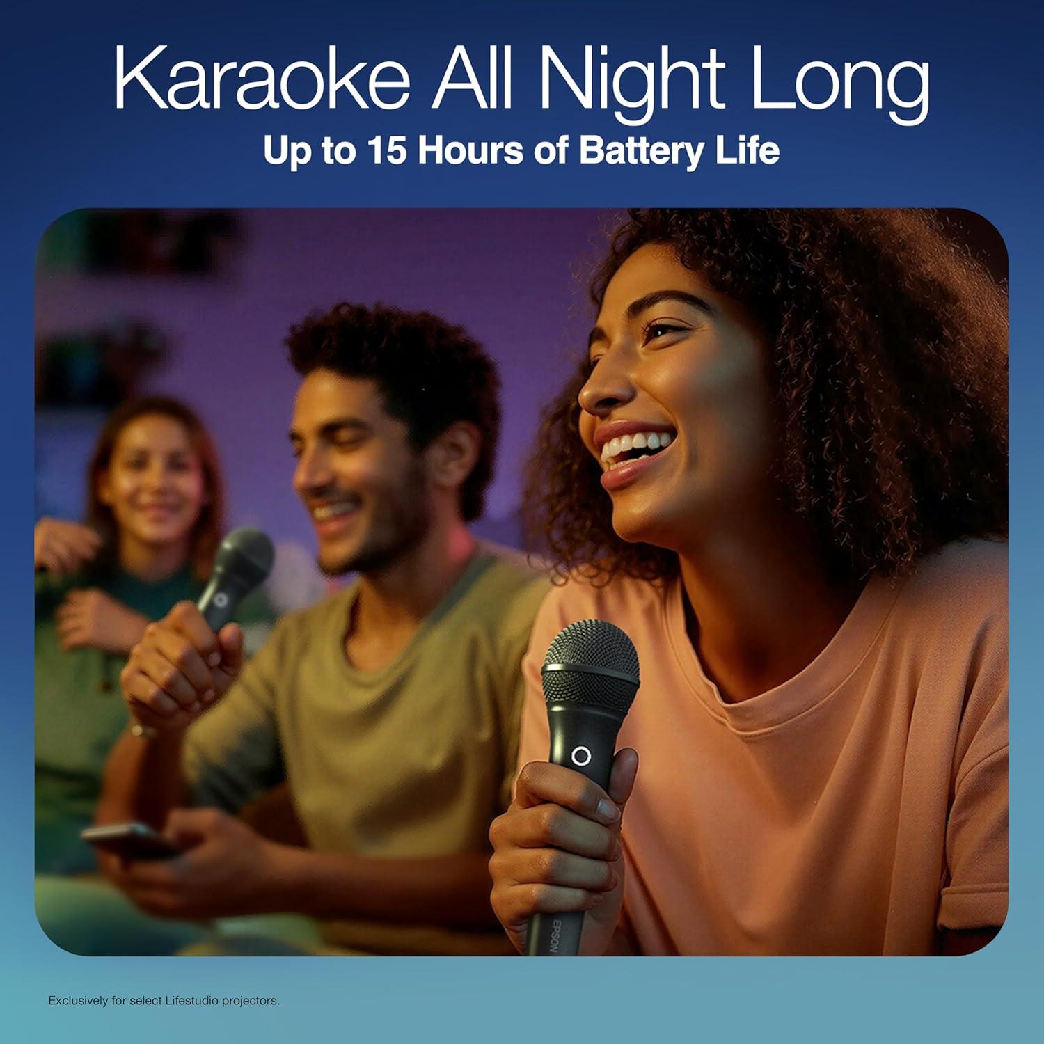 Epson Lifestudio Wireless Microphone for Karaoke, Portable, Works with Epson Lifestudio Projectors with Sound by Bose, 6 Sound Modes, Handheld Mic for Singing, Adult and Kids, Party (2 Pack)