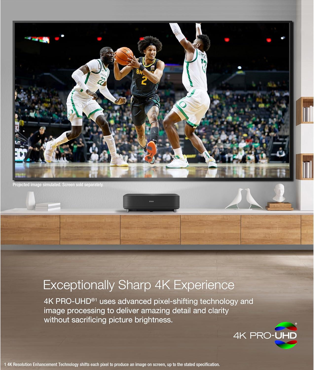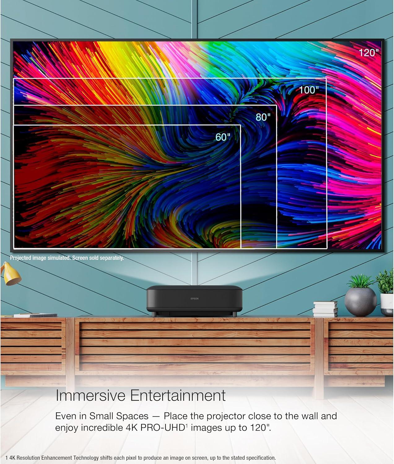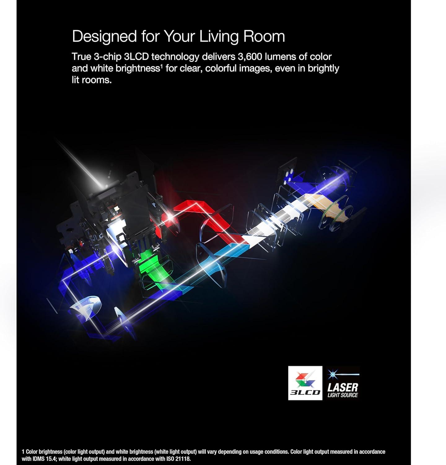 Epson EpiqVision Ultra LS650 Ultra Short Throw 3-Chip 3LCD Smart Streaming Laser Projector, 4K PRO-UHD, HDR, 3,600 Lumens, up to 120″, Epson Setting Assistant, Android TV, Sound by Yamaha – Black