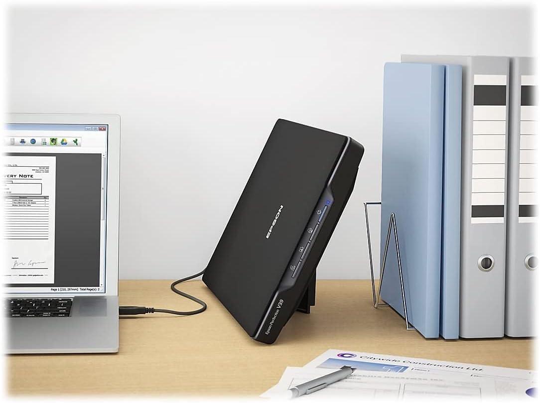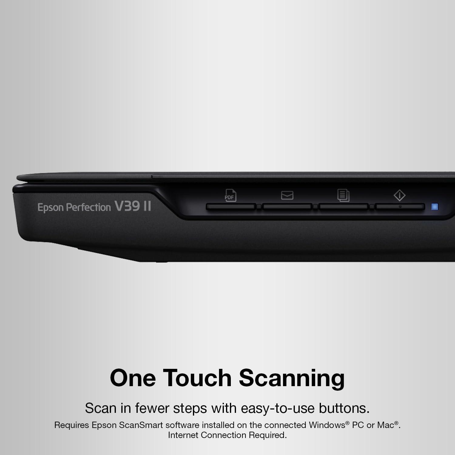 Epson – Perfection V39 II – Color Photo and Document Flatbed Scanner – 4800 dpi Optical Resolution – High-Rise, Removable Lid – Scan to Cloud – USB Power – Image Scanning – Black(Perfection V39 II)