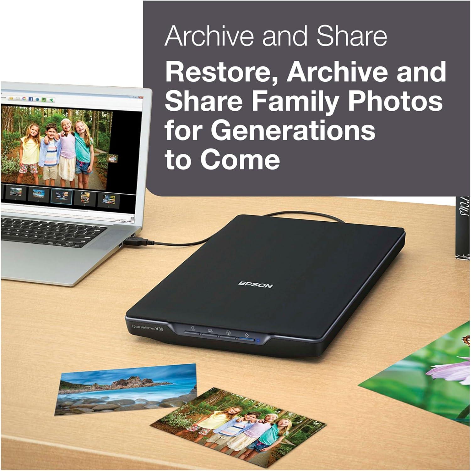 Epson – Perfection V39 II – Color Photo and Document Flatbed Scanner – 4800 dpi Optical Resolution – High-Rise, Removable Lid – Scan to Cloud – USB Power – Image Scanning – Black(Perfection V39)