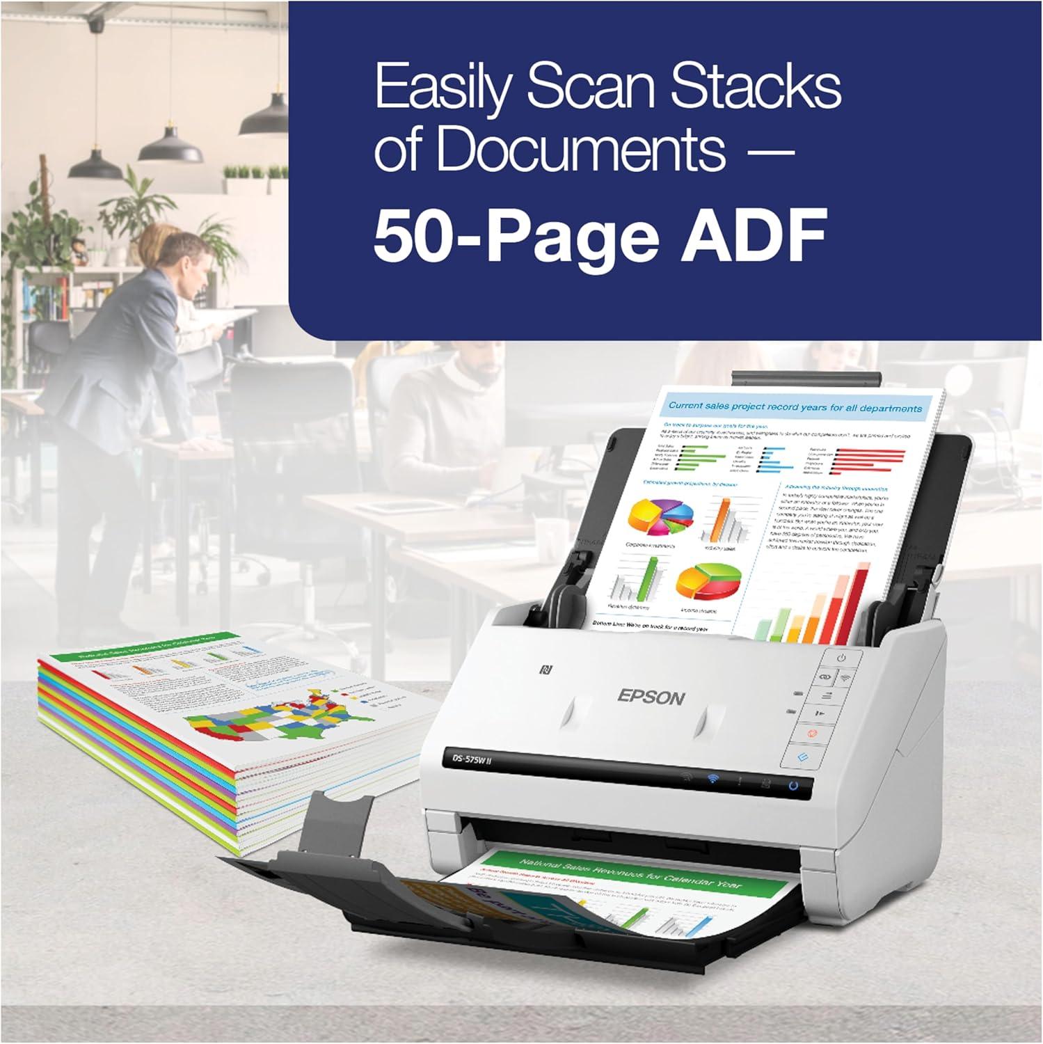 Epson DS-575W II Wireless Color Duplex Document Scanner for PC and Mac with 50-Page Auto Document Feeder (ADF), Twain and ISIS Drivers, Epson Smart Panel Mobile App(Scanner)