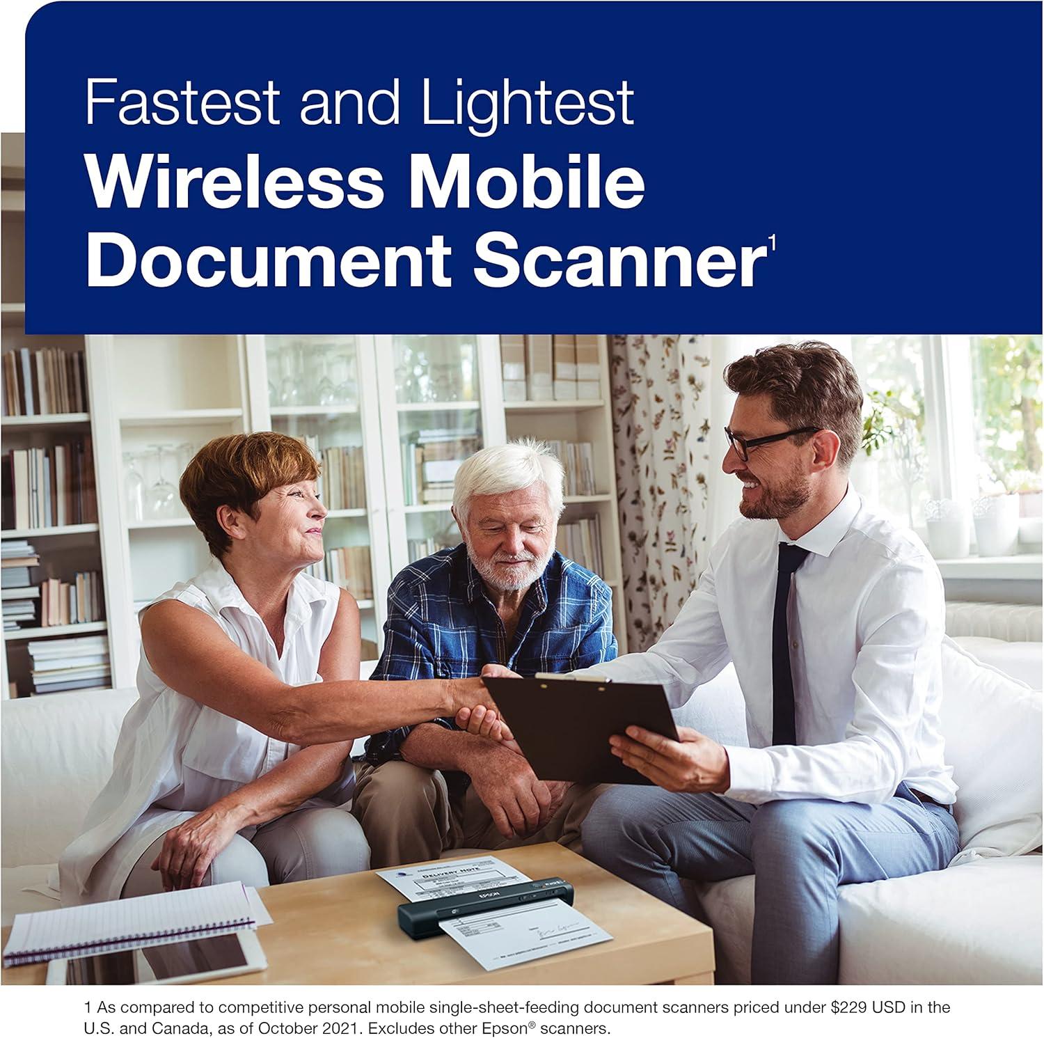 Epson Workforce ES-60W Wireless Portable Sheet-fed Document Scanner for PC and Mac Black, Small (Renewed Premium)