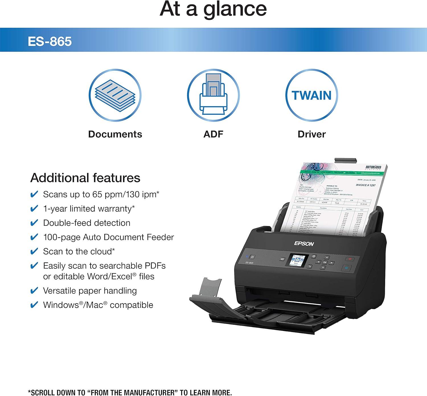 Epson Workforce ES-865 High Speed Color Duplex Document Scanner with Twain Driver (Renewed)