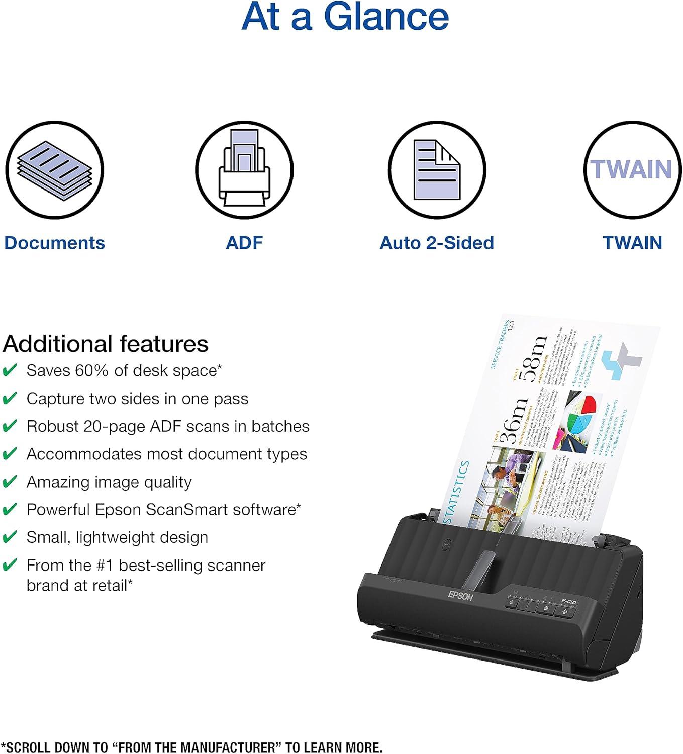 Epson WorkForce ES-400 Color Duplex Document Scanner for PC and Mac, Auto Document Feeder (ADF)