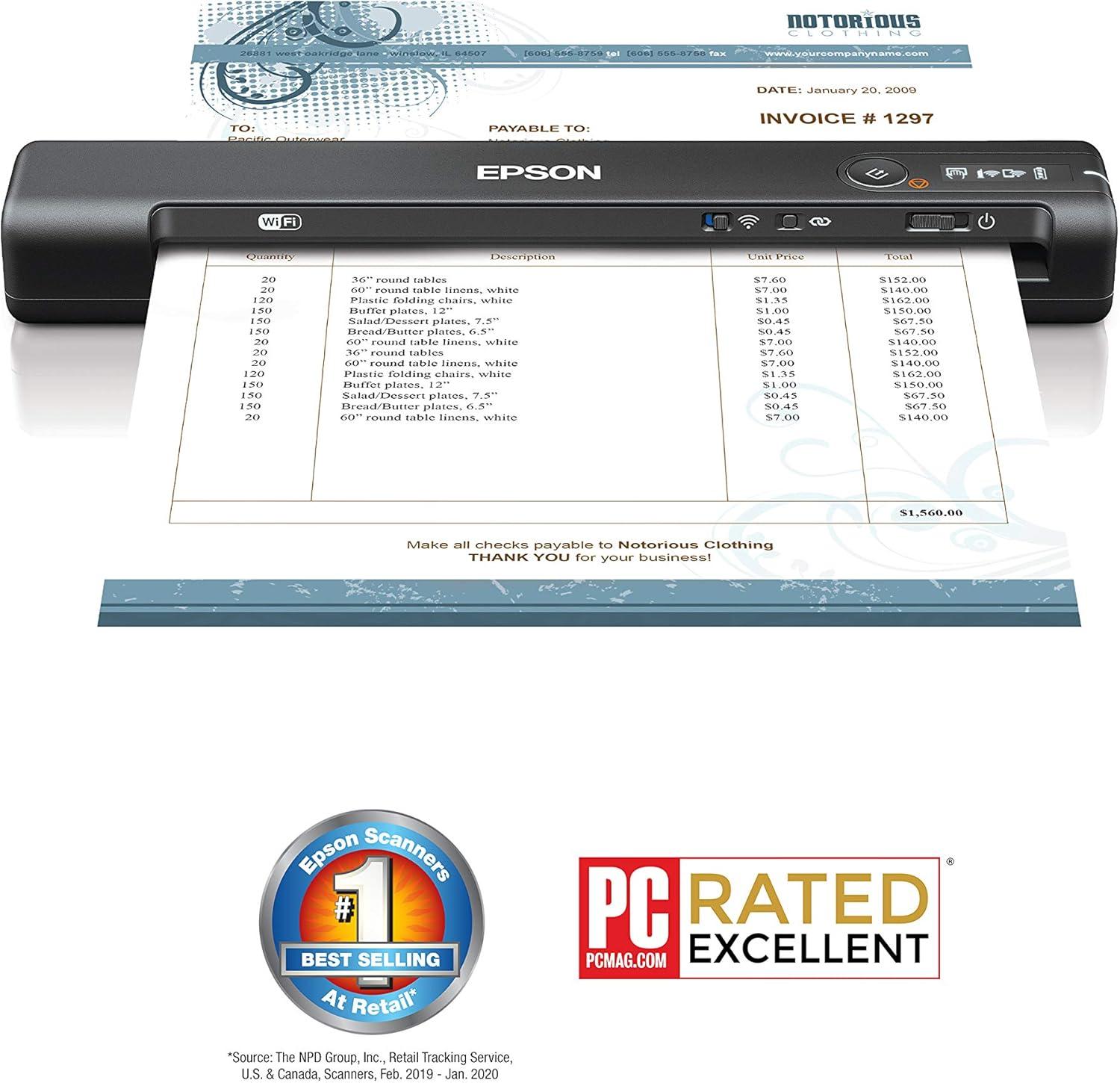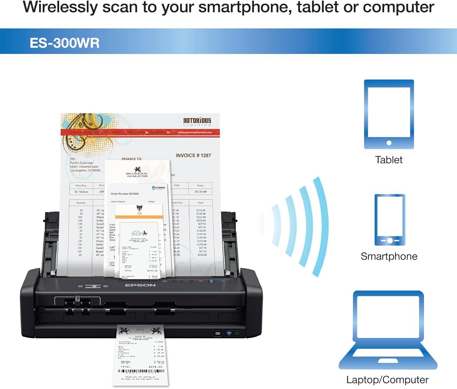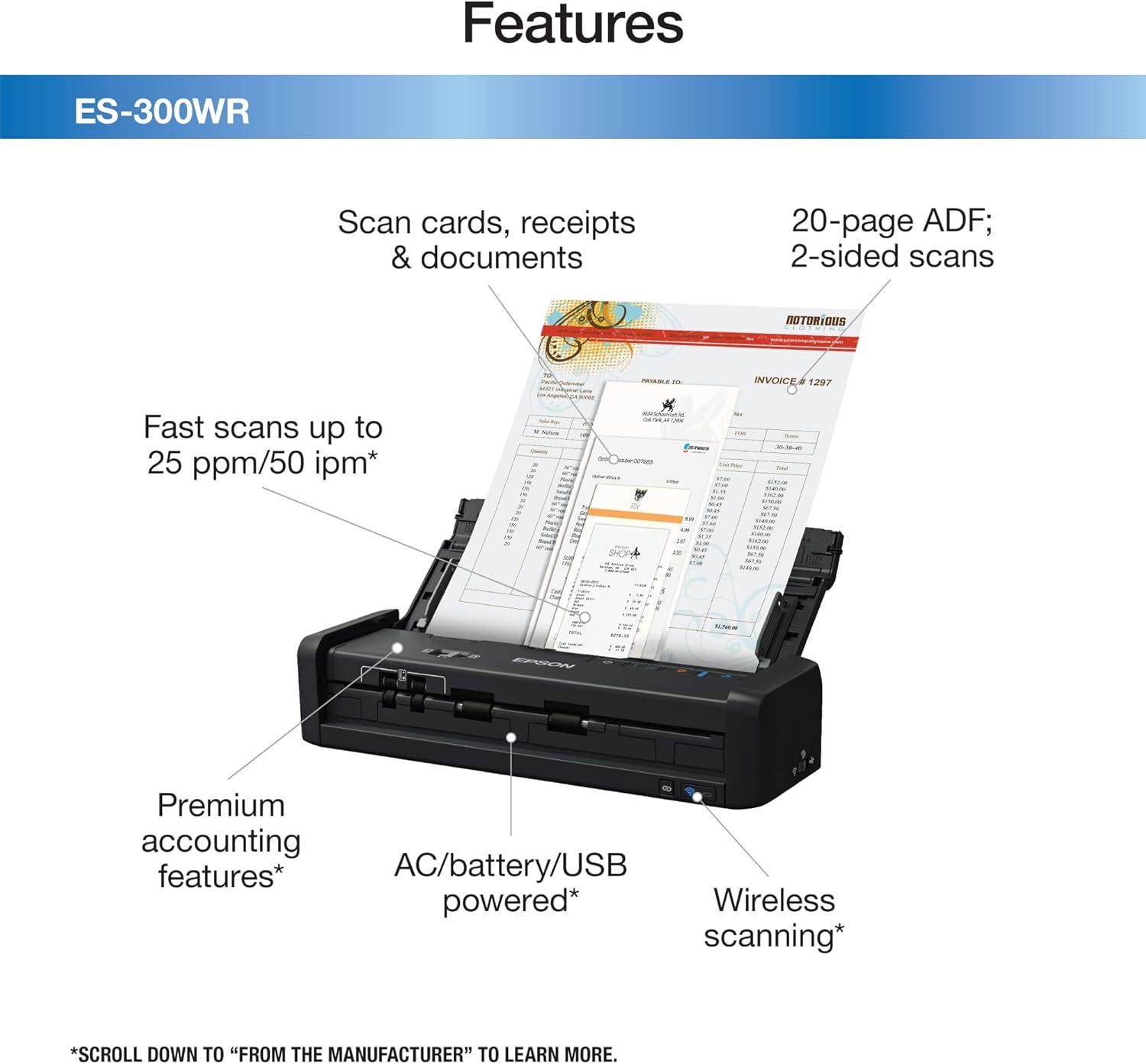 Epson ES-300WR Wireless Color Portable Duplex Document Scanner Accounting Edition for PC and Mac, Auto Document Feeder (ADF)