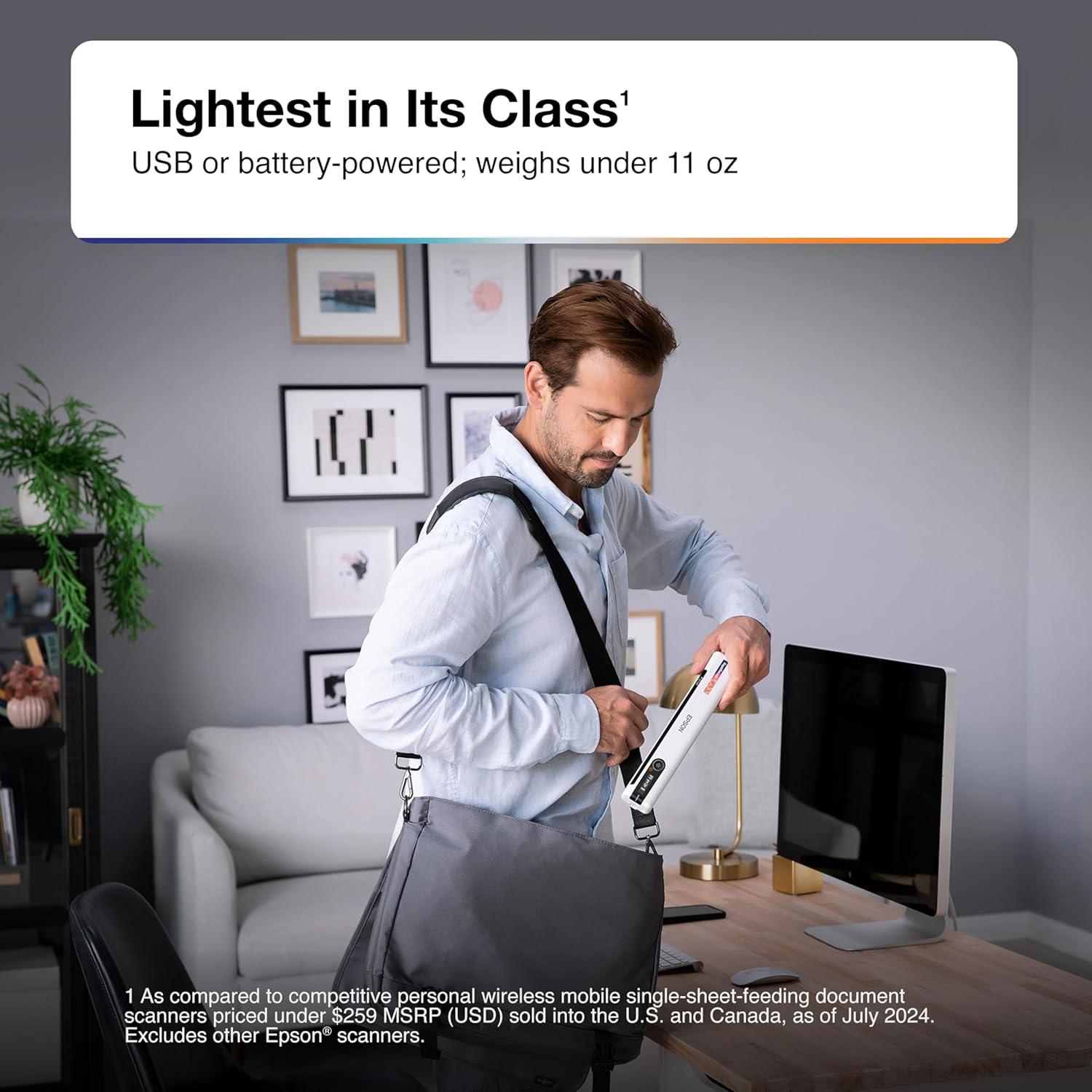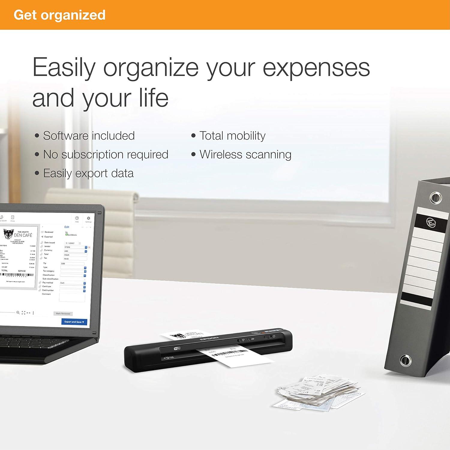 Epson RapidReceipt RR-70W Wireless Mobile Color Receipt & Document Scanner with ScanSmart AI PRO Receipt Management & PDF Software for PC & Mac(ES-65WR – New)