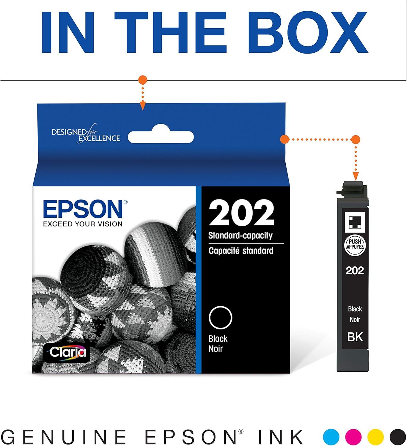 EPSON 202 Claria Ink Standard Capacity Black Cartridge (T202120-S) Works with WorkForce WF-2860, Expression XP-5100(Black)