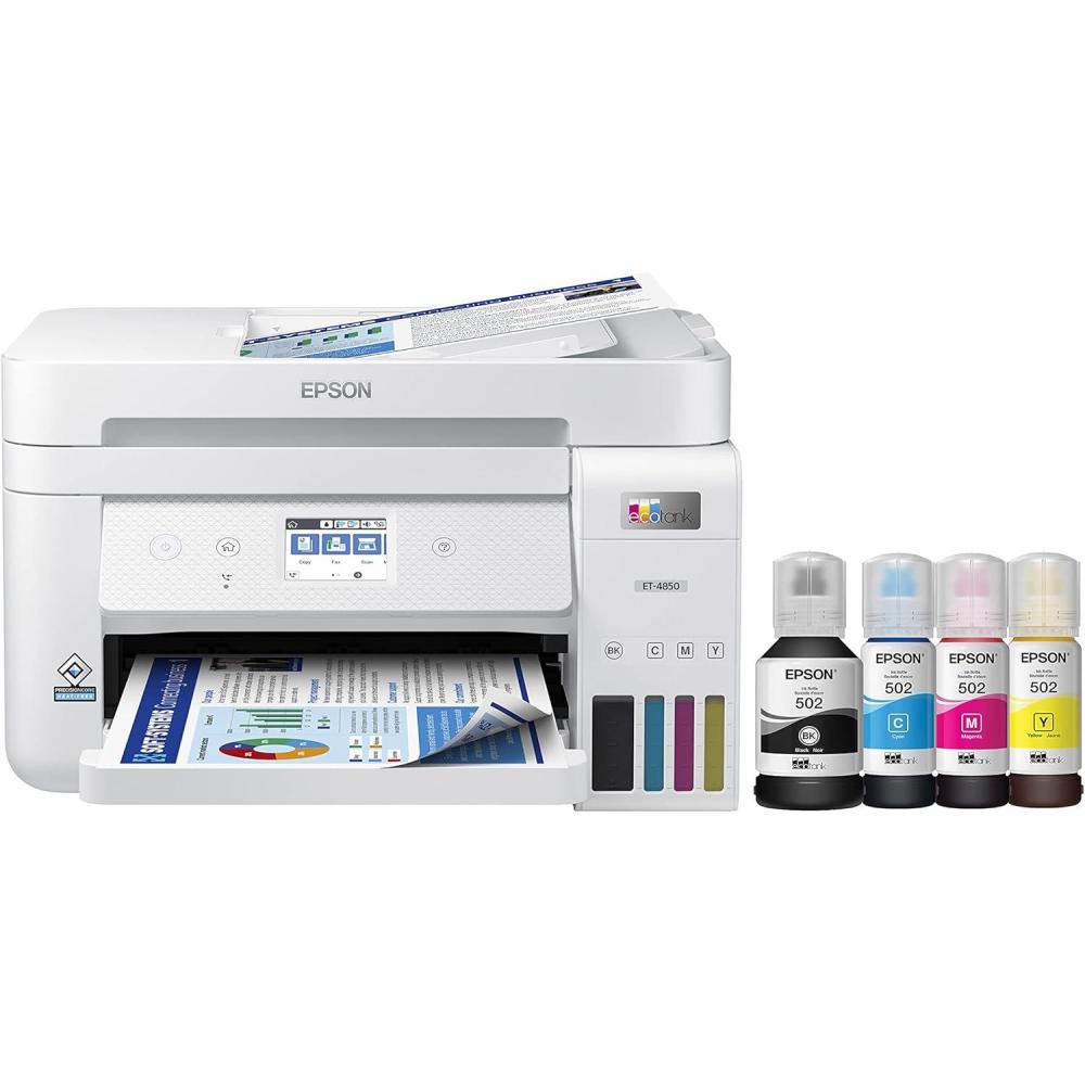 Epson EcoTank ET-4850 Wireless All-in-One Cartridge-Free Supertank Printer with Scanner, Copier, Fax, ADF and Ethernet – The Perfect Printer Office – White, Medium(ET-4850-W)