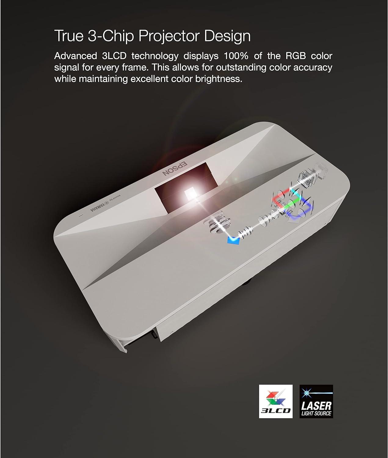 Epson EpiqVision Ultra LS800 Ultra Short Throw 3-Chip 3LCD Smart Streaming Laser Projector, 4,000 Lumens, 4K PRO-UHD, HDR, 150″, Android TV, 2.1ch Yamaha Built-in Speakers – White(White)