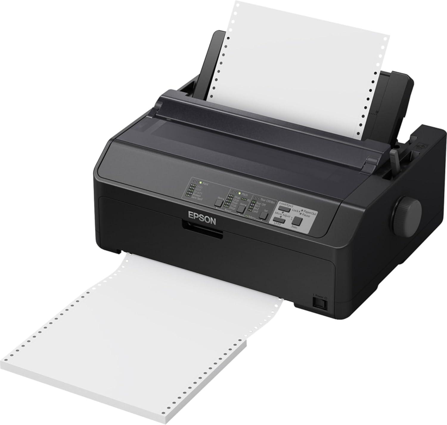The Epson FX-890II Series offers the durability and ease of use for critical daily print requirements. These reliable 9-pin, narrow-carriage impact printers boast a long life cycle, a 3-year limited warranty and speeds up to 738 cps (1). Their up-to-7.5-million-character ribbon cartridge (2) reduces user interventions as well as cost per page. Engineered for seamless integration into virtually any system, they include Epson ESC/P, IBM PPDS and MICROLINE printer languages. Ideal for harsh environments, these workhorses race through cut-sheet, continuous or multipart forms up to 7 pages thick, and feature an intuitive control panel for easy setup and operation.